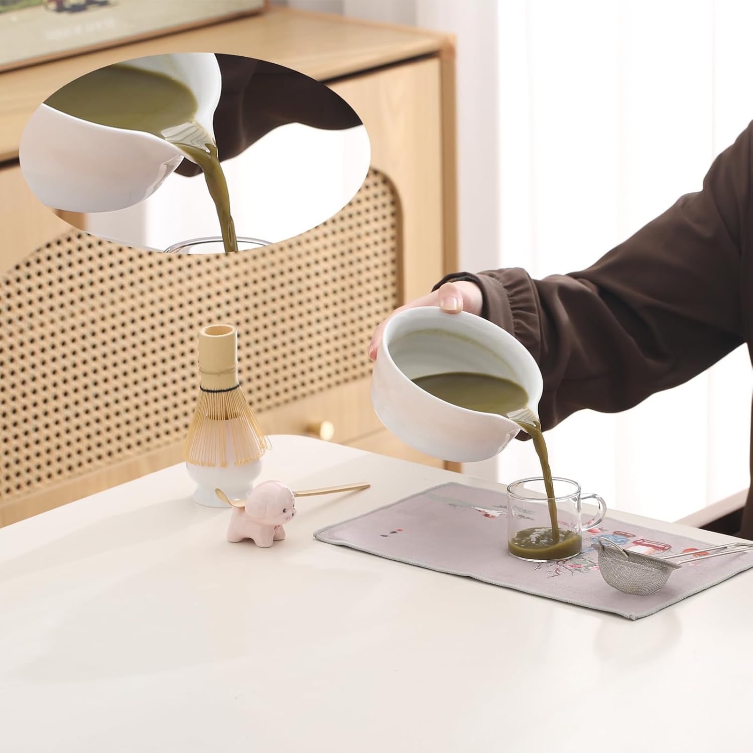 - 3 Thoughtful Spout Design: Our ceramic matcha bowl features a convenient spout design, ensuring a smoother and more controlled pour every time. The thoughtful spout not only adds a touch of elegance to your matcha preparation, but also eliminates the risk of any unwanted spills or messes, providing you with a pleasant and clean matcha experience.