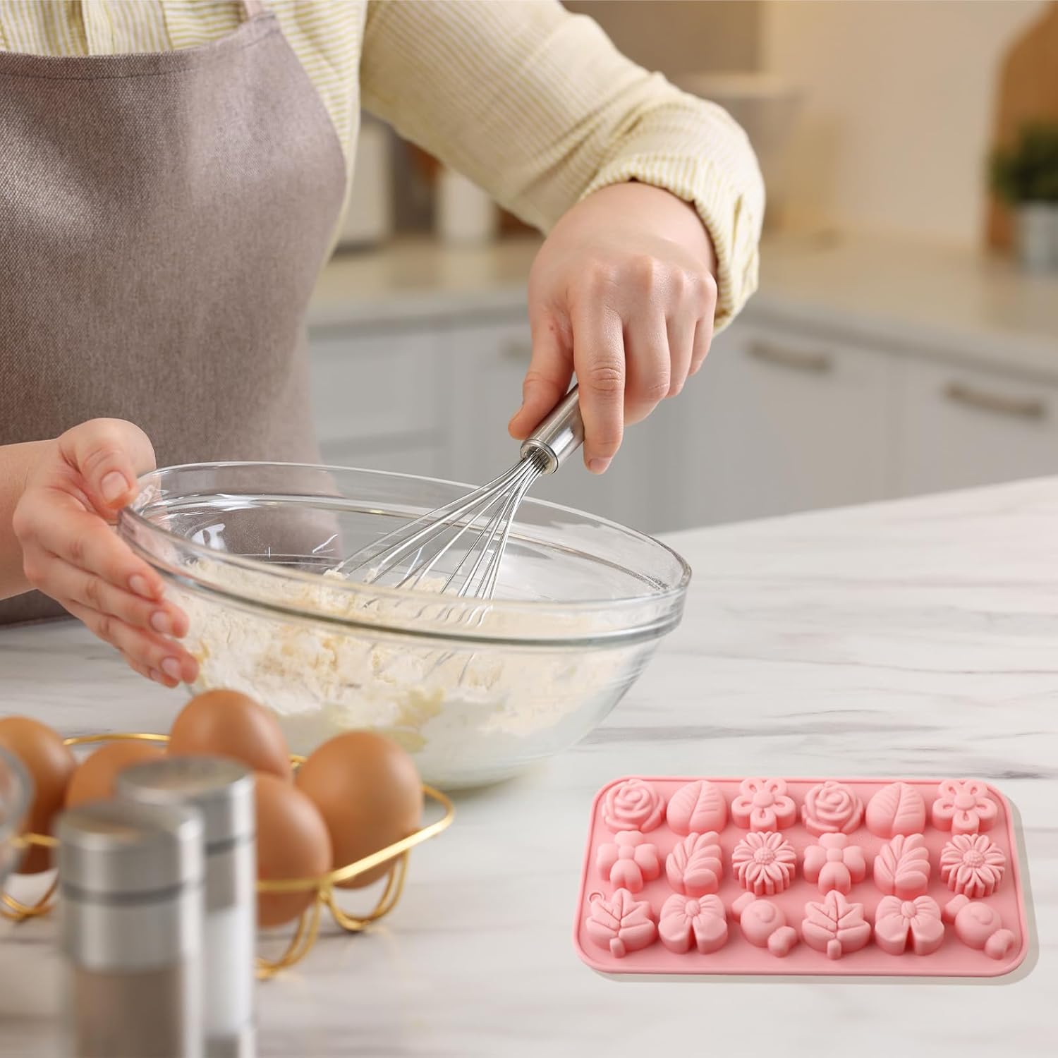 2Pcs Silicone Flower Molds for Cakes, Cupcakes, Chocolate, Candy, Sugar Craft, and Resin Crafts - Pink Flower Mold Set(Pink)