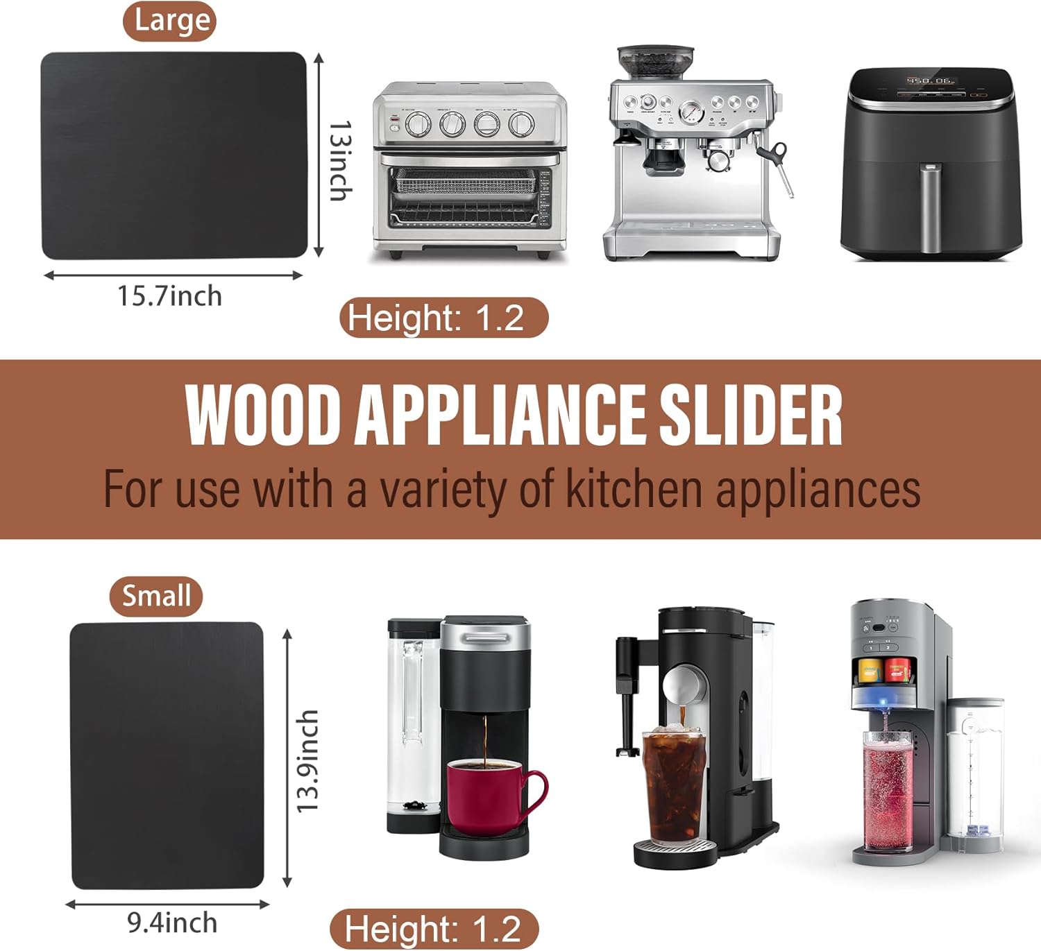 - 【Easy to Use】 No installation required. The sliding tray glides smoothly on surfaces like marble and wood, making it an excellent kitchen appliance accessory. Note: The slide board height is 1.2 inches. Please select the appropriate slide board based on the dimensions of your appliance's base and cabinet height.