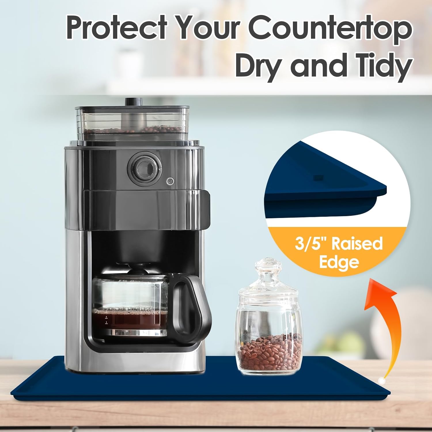 - 100% Water Does Not Flow Out: The coffee maker mat is built with 3/5" raised edge, like a tray and it can contain any liquid spills from the coffee maker. The premium material not only protect your countertop from scratches, especially protect the wood countertop, but also keep your your countertop tidy, clean
