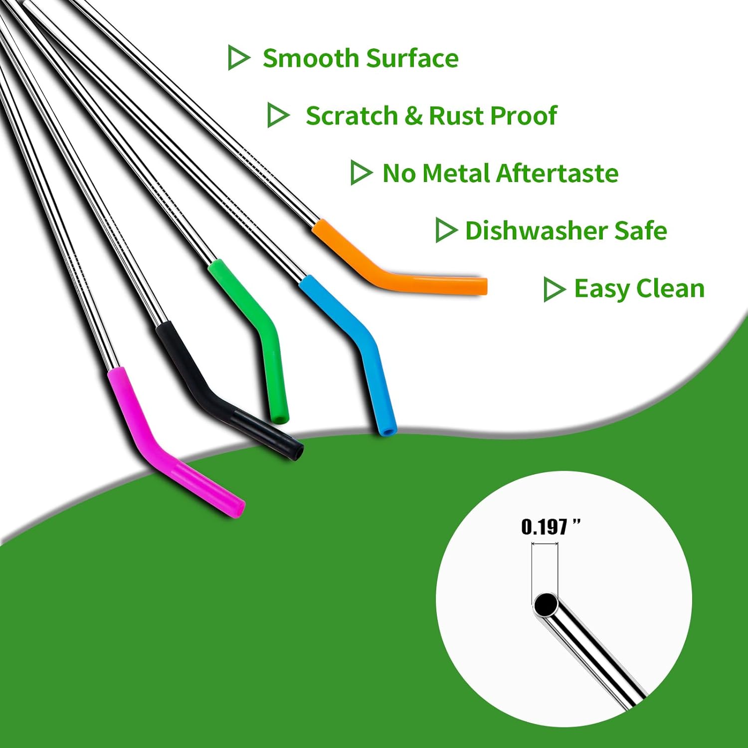 - 【PREMIUM FOOD GRADE STAINLESS STEEL, SMOOTH POLISHING】Metal reusable straws and the rubber tips are made of food grade stainless steel and silicone, BPA-free straws and covers, no metallic taste, well polished, surfaces are very smooth, our stainless straws can last for years to come, great stainless steel straws with silicone tips for daily use.