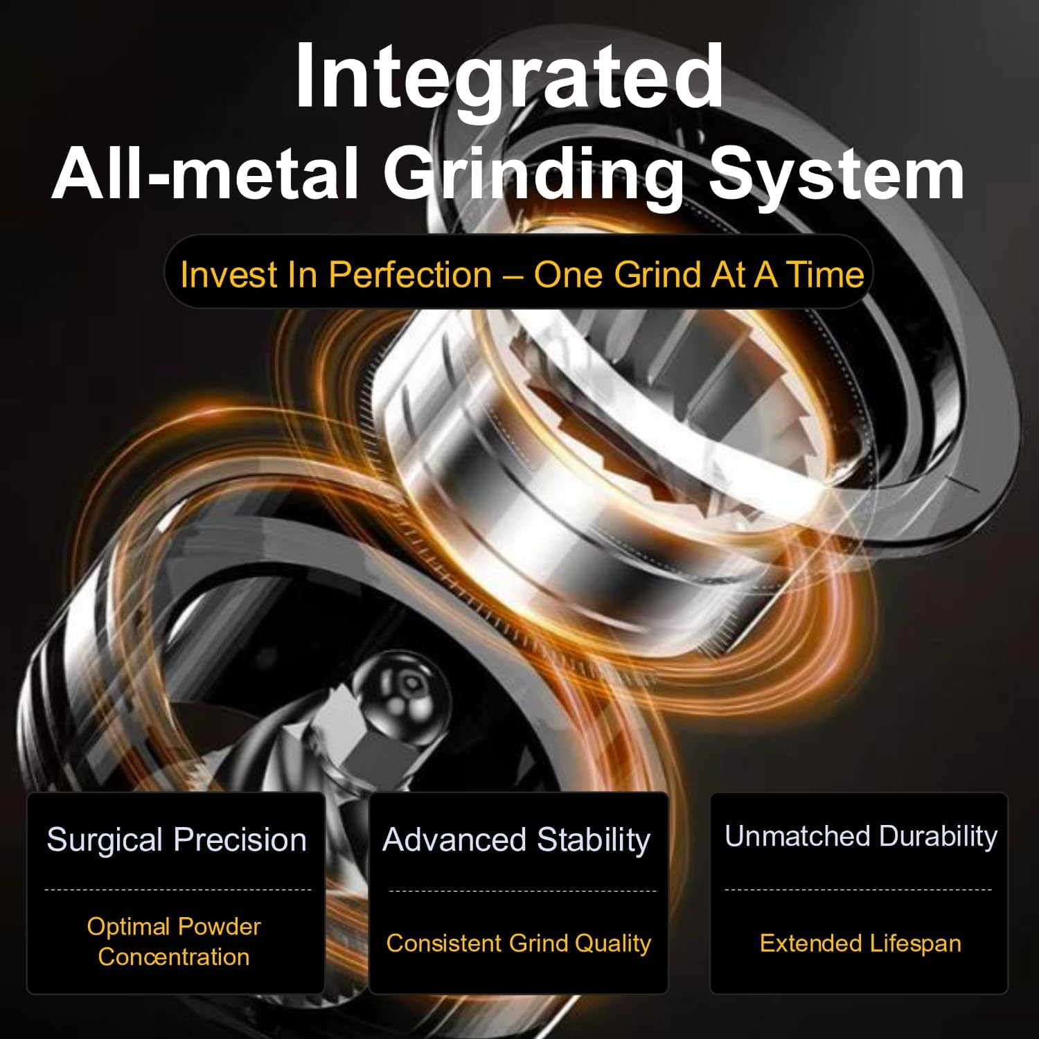 - ALL-PURPOSE COFFEE GRINDER: This coffee bean grinder features 5-blade with 48mm burrs and grinds espresso at a rate of 25-30 seconds, dramatically improving grinding efficiency. The burr coffee grinder's precision design ensures an even grind for a wide range of flavors, delivering consistent results across all brewing techniques, from espresso to French press coffee and more. Espresso grinder’s integrated all-metal grinding system greatly improves service life and durability.