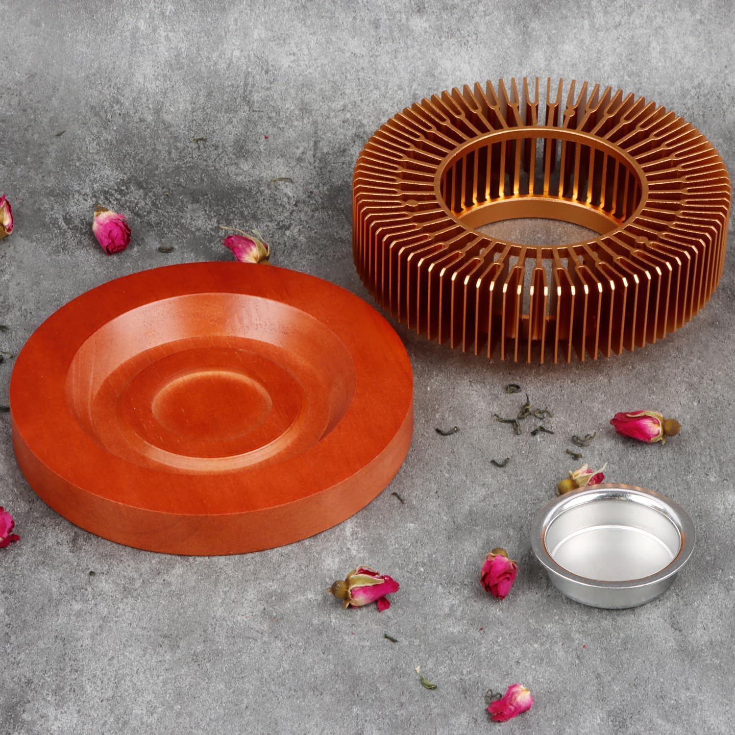 - [ Save Energy] No need to reheat on an electric or gas stove, just place a lit tea light candle in the tea warmer and it will keep your tea warm for hours. The aluminum top and wooden base separate effortlessly, allowing you to replace tea light candles with ease.