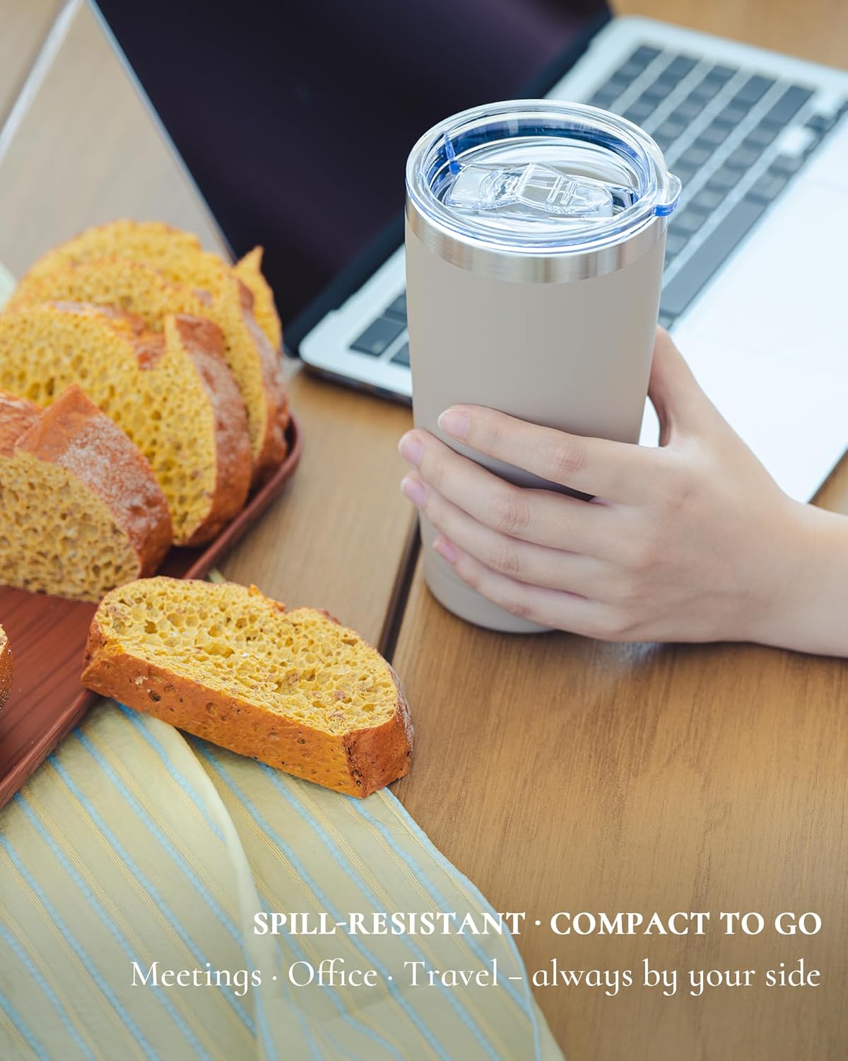 Travel Coffee Tumbler 20oz, Leakproof Travel Coffee Mug with Lid and Straw, Stainless Steel Double Wall Vacuum Insulated Tumbler for Hot/Iced Drinks (Textured Matte, Brown)