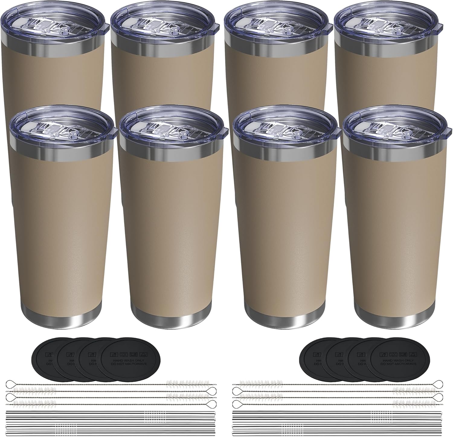 Travel Coffee Tumbler 20oz, 8 Pack Leakproof Travel Coffee Mug with Lid and Straw, Stainless Steel Double Wall Vacuum Insulated Tumbler for Hot/Iced Drinks (Textured Matte, Brown)
