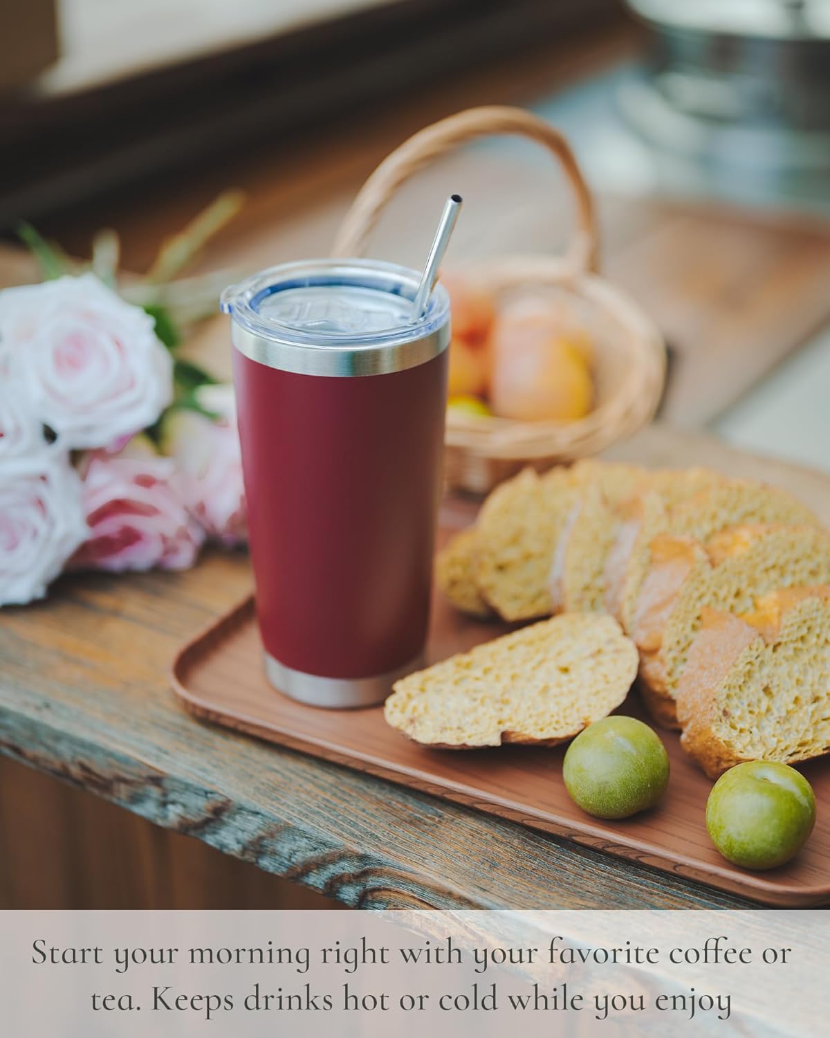 Travel Coffee Tumbler 20oz, 1 Pack Leakproof Travel Coffee Mug with Lid and Straw, Stainless Steel Double Wall Vacuum Insulated Tumbler for Hot/Iced Drinks (Textured Matte, Light Blue)