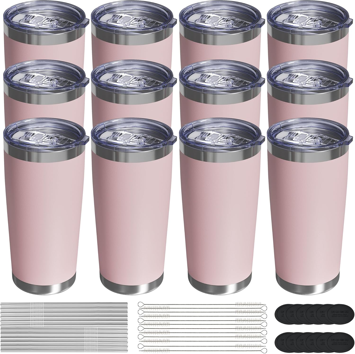 Travel Coffee Tumbler 20oz, 12 Pack Leakproof Travel Coffee Mug with Lid and Straw, Stainless Steel Double Wall Vacuum Insulated Tumbler for Hot/Iced Drinks (Textured Matte, Soft Pink)