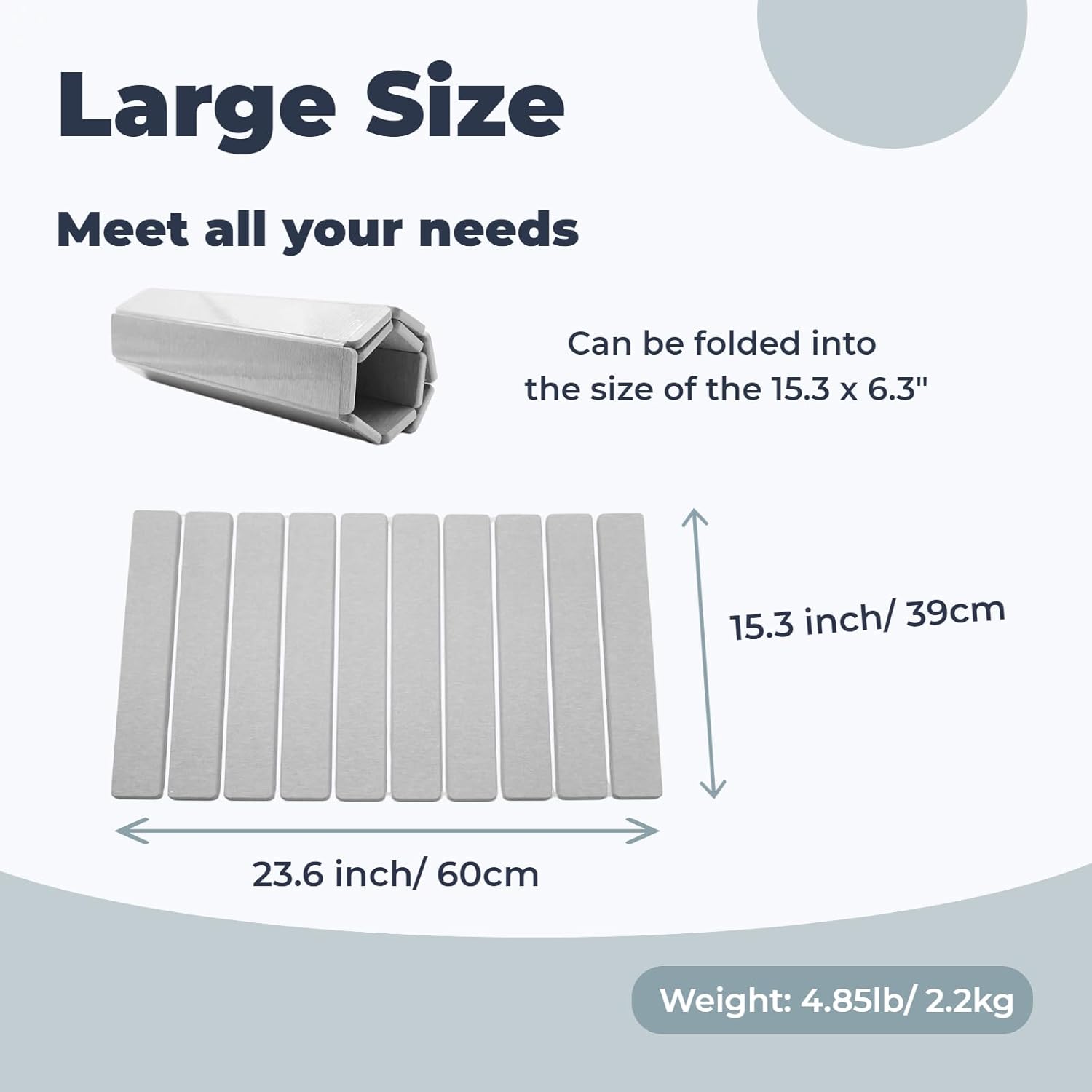 - 【Space-Saving & Foldable】 The size of the mat is 23.6 x 15.3'' when unfolded, which is larger than normal drying mat, make it provides ample drying space for household use. The collapsible design allows it folds or rolls compactly (15.3 x 6.3'' ) for easy to storage in drawers or cabinets. Ideal choice for small kitchens or minimalist homes to keep your countertop clean