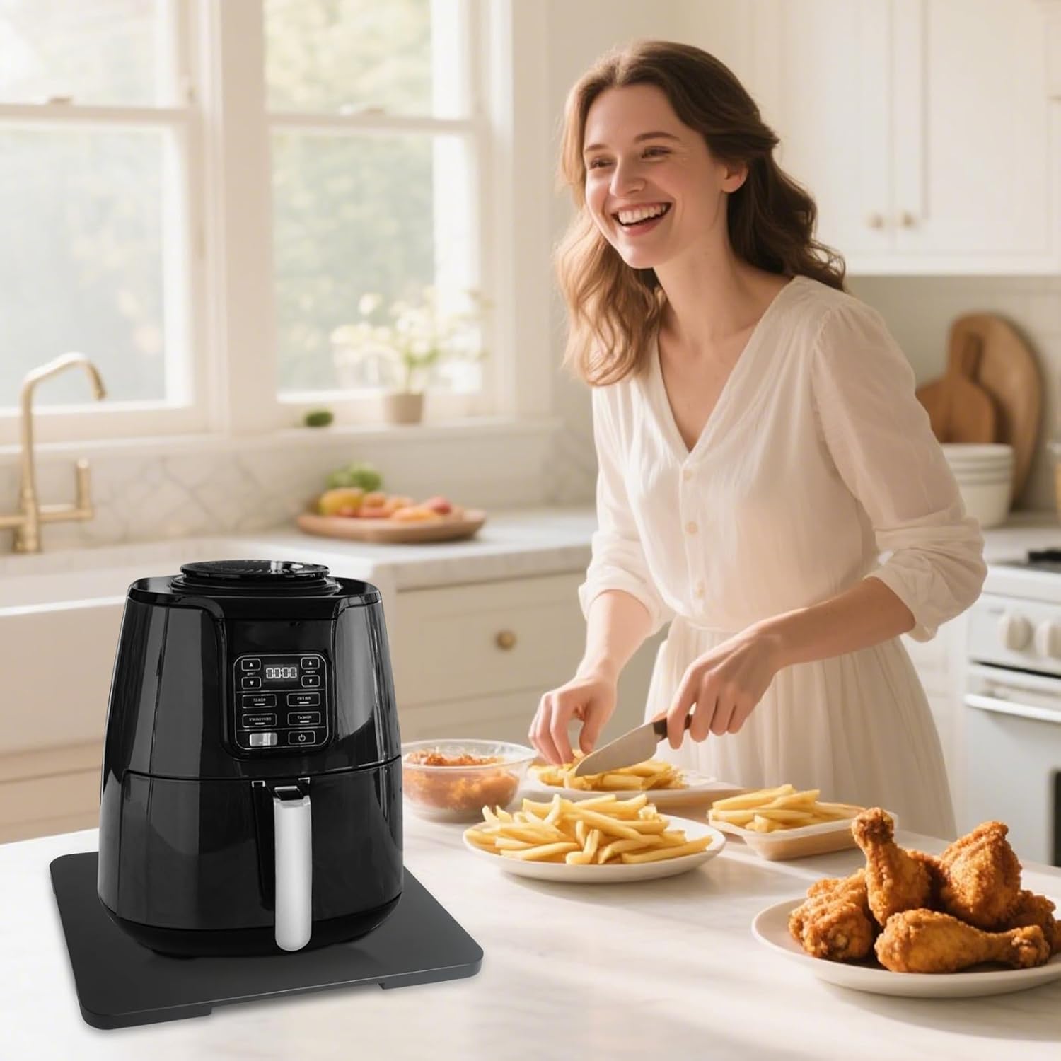 - ELEGANTLY ORGANIZE: With the coffee matt for counter, you can reorganize your kitchen accessories in style without scratching your countertop or kitchen surfaces. Whether you want to easily access your coffeemaker air fryer from under the cabinet, or you need more counter space to prepare a large meal, coffee maker mat for countertops lets you quickly and easily move appliances.