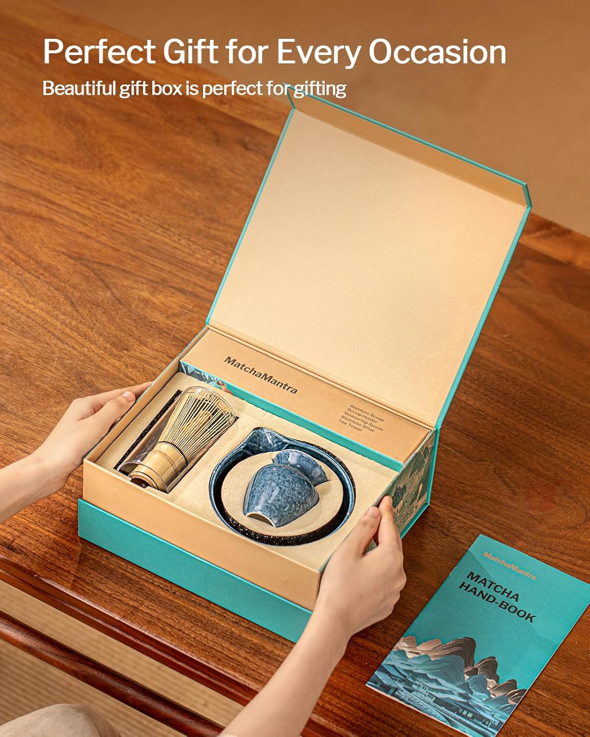 - [Premium Matcha Experience] Our MatchaMantra Artisan Matcha Whisk Set is a matcha set whisk and bowl that provides a premium matcha experience. Each piece of this matcha kit is carefully crafted, with the bamboo whisk, or chasen, meticulously hand - made to ensure perfect whisking for your matcha latte.