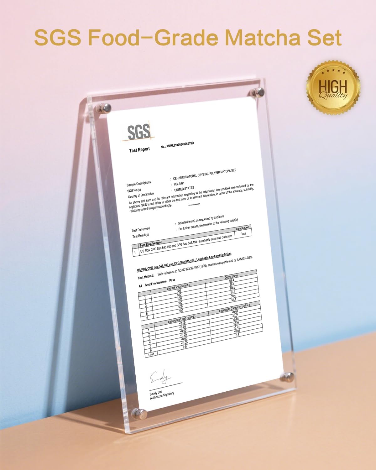 Natural Crystal Flower Matcha Set - 4 Pcs Food Grade Matcha Kit with Spouted Bowl, Matcha Whisk, Scoop and Chasen Holder - Matcha Tea Ceremony Gift for Matcha Lovers (Sakura Whisper)