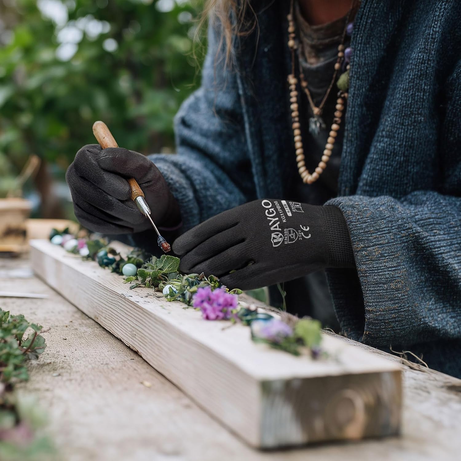 - Excellent Abrasion Resistance: The polyurethane-coated palms and fingertips provide a secure grip in dry and slightly wet/oily conditions while maintaining high dexterity and tactile sensitivity, making them ideal for precise tasks
