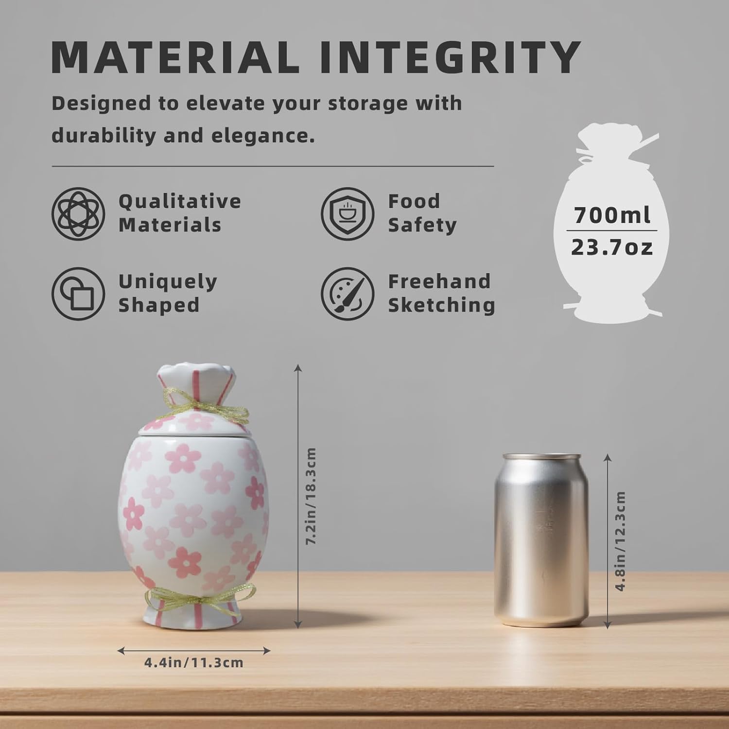 - 【Multifunctional Containers】----- This kitchen storage jars is 700 ml / 23.7 oz, to meet your various storage needs. Use the ceramic food storage containers for cookie, coffee beans, tea, spices, flour, sugar, brown sugar, dried grains, cereal, or dog treat. These jars can also serve a spen holder, small vases, and more.