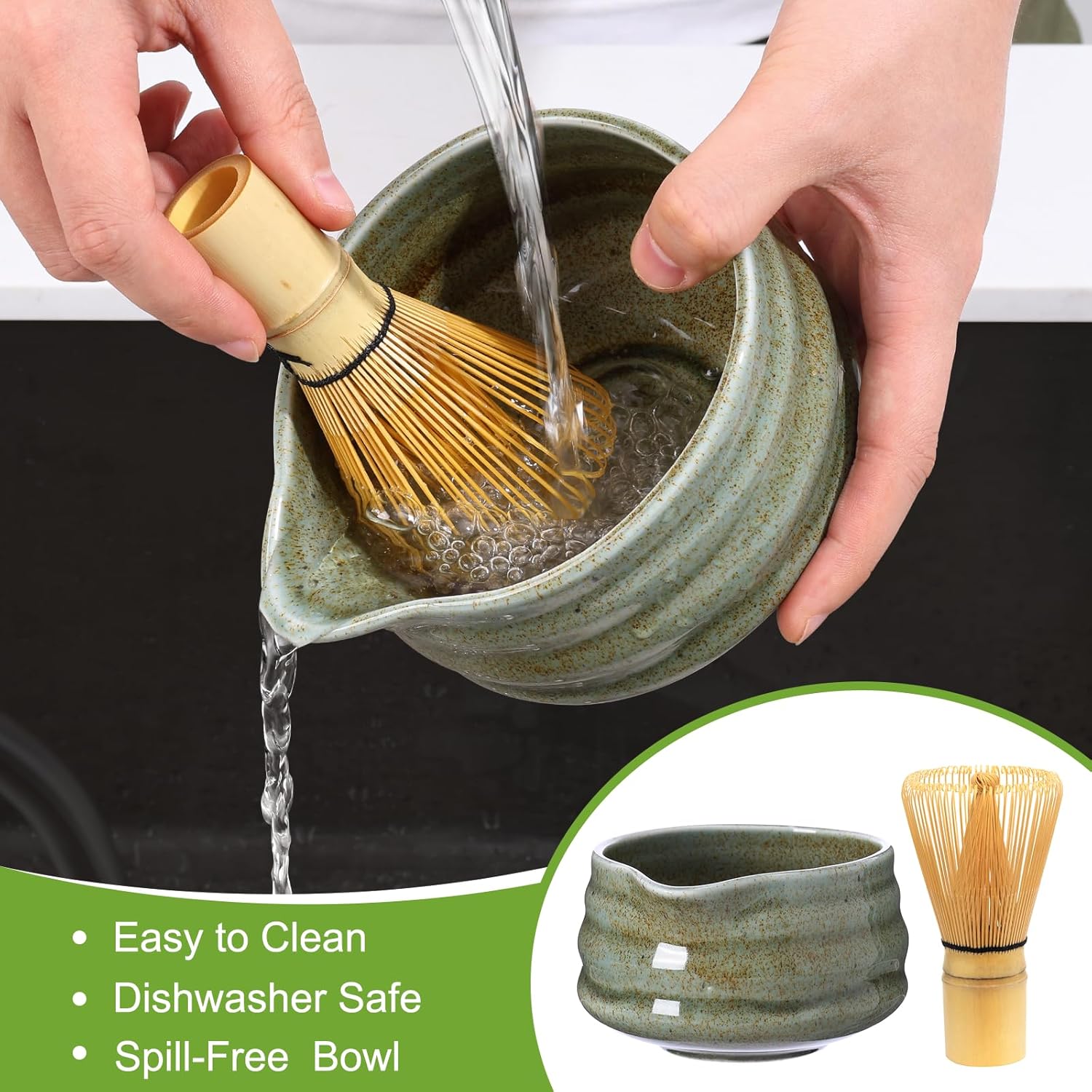 - 【Eco-Friendly Materials】The ceramic matcha bowl with food-grade glaze + natural bamboo tools treated with anti-splitting oil. Stainless steel mesh strainer ensures silky-smooth matcha powder. All materials BPA-free and dishwash-safe (except bamboo items).
