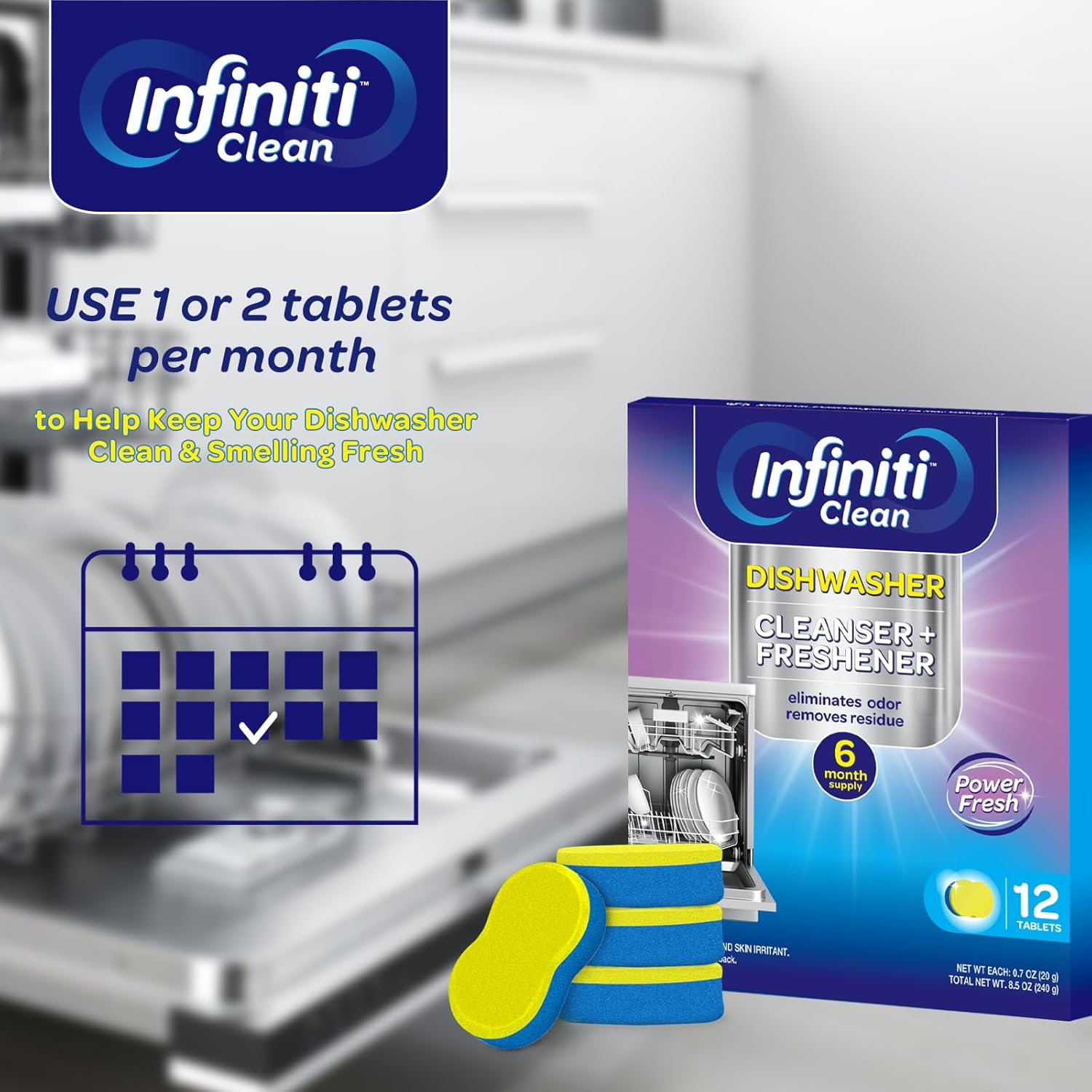 - 6 Months Supply: Each box of dish washer cleaner contains 12 individually wrapped tablets, ensuring 6 months supply. The included dishwasher cleaner usage schedule on the box helps you monitor cleaning and maintain your appliance's peak performance