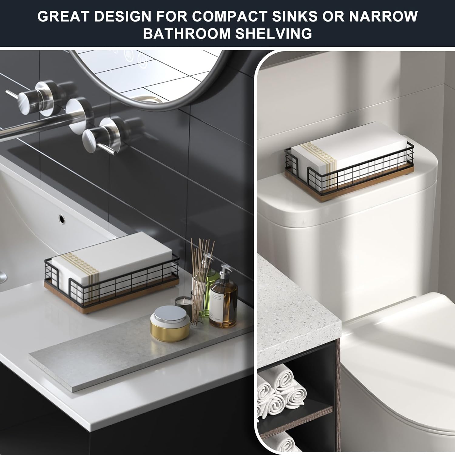 - Quite Versatile: This guest towel holder hold paper towels in the guest bathroom for hand drying; hold paper bath towels for your powder room, easy to retrieve towel when needed; It can also be used as a lunch napkin holder, looking very nice on the dining table