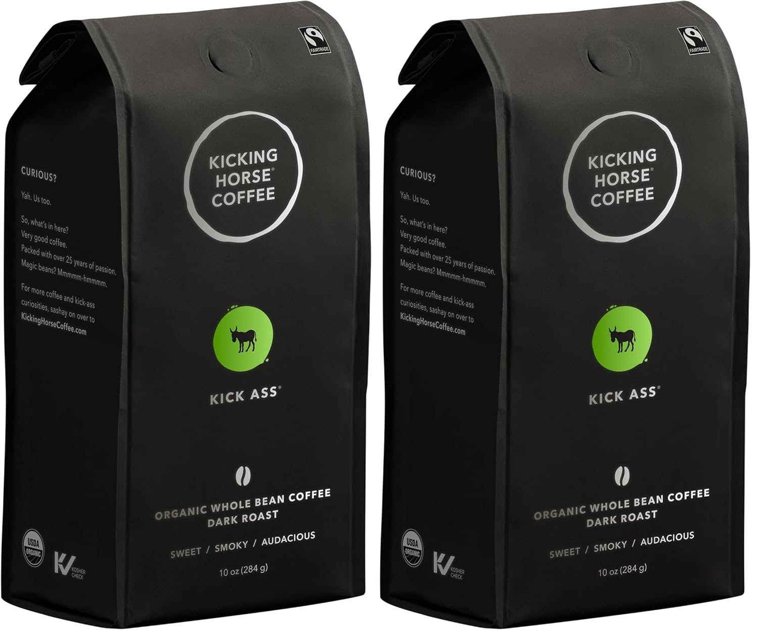 Kicking Horse Coffee, Kick Ass, Dark Roast, Whole Bean, 10 Oz (Pack of 2)