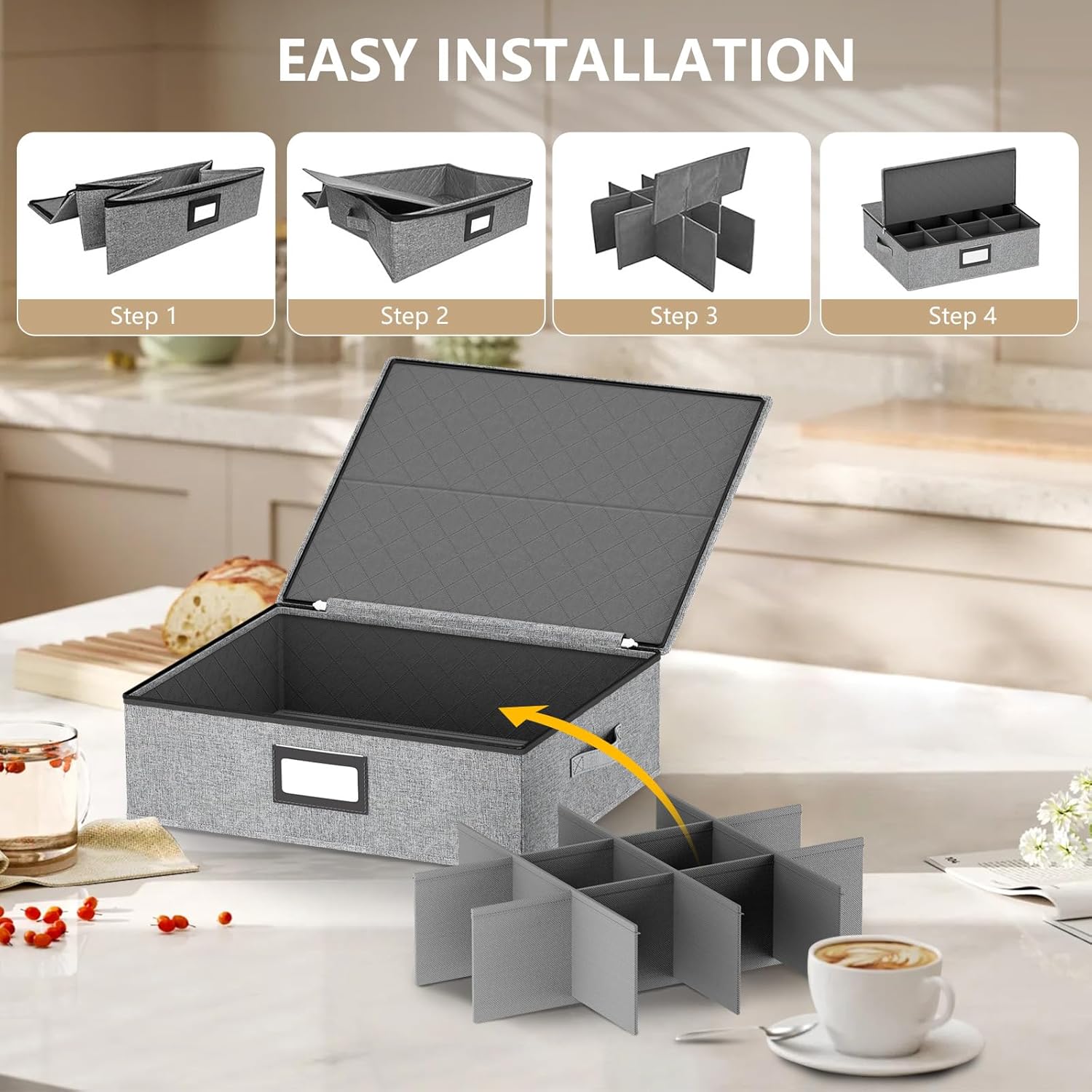 homyfort Coffee Mug Storage Box with Dividers, Durable China Storage Containers for Coffee Mugs, Tea Cups Storage Organizer with Lid, Handles, Label Window, Holds 24 Mugs, Hard Shell and Stackable
