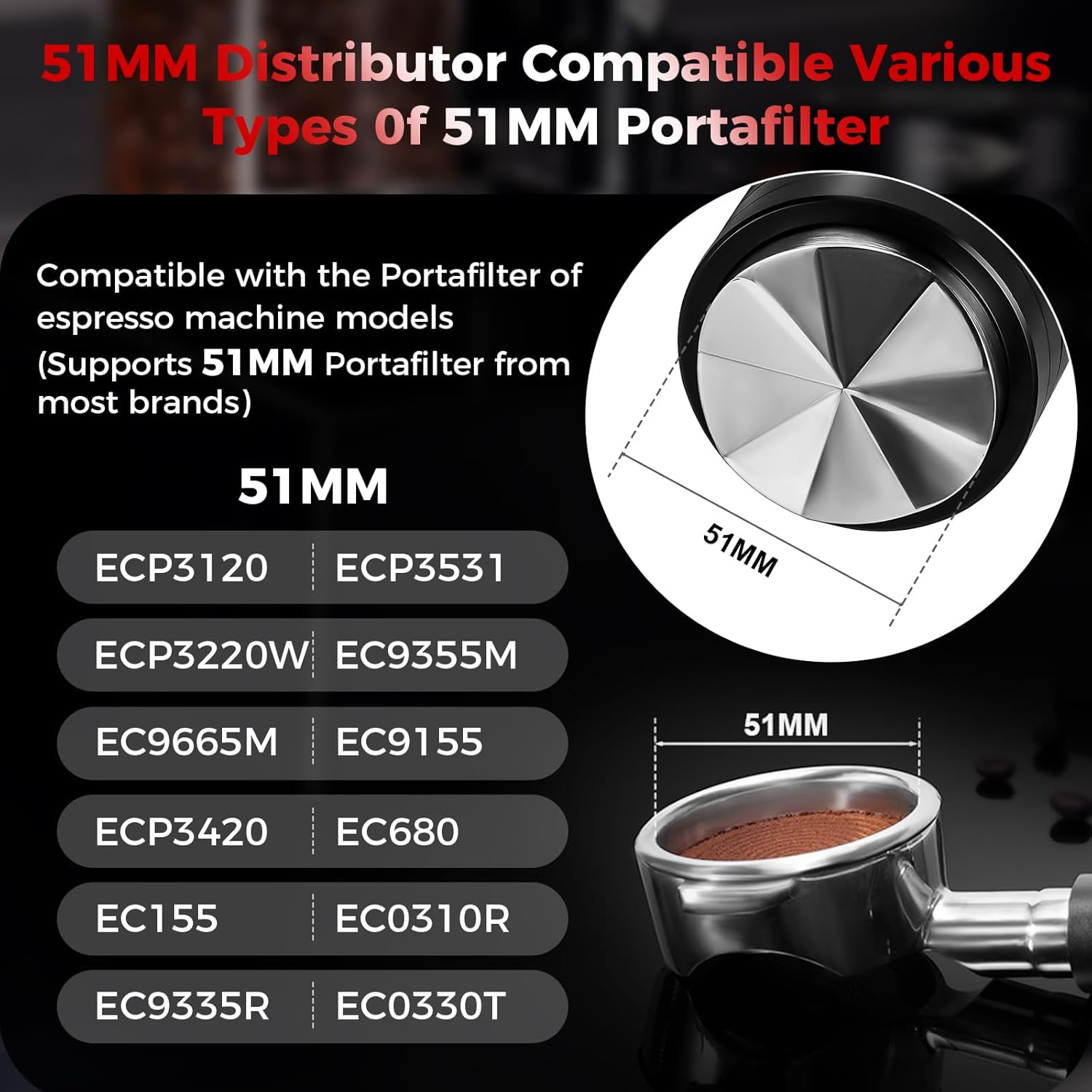 IKAPE 51MM Newly Upgrade Espresso Coffee Distributor, Coffee Dual-Bearing & High-Speed Distribution Tools, Adaptive Height Coffee Tamper Leveler for 51mm Portafilters