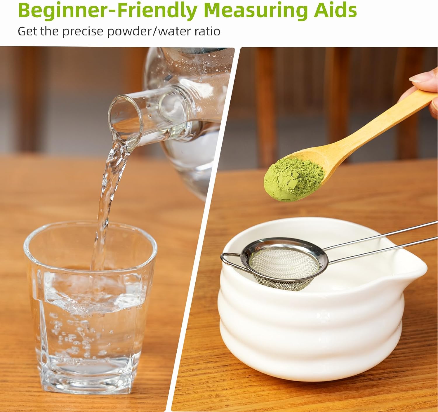 - 【Value Matcha Whisk Set】This matcha whisk set is available 1 bamboo matcha whisk, 2 bamboo scoop, 1stainless steel sifter, 1 ceramic matcha bowl, 1 whisk holder, 1 tea towel, allowing you make and enjoy delicious matcha
