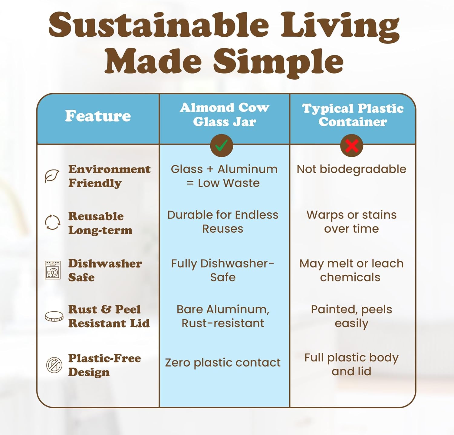 - Stylish and Easy to Maintain: Inspired by vintage milk bottles, this glass jar adds farmhouse charm to your kitchen while matching the minimalist Almond Cow aesthetic. It’s dishwasher-safe, simple to clean, and easy to store, making it a practical and beautiful addition to your eco friendly routine.