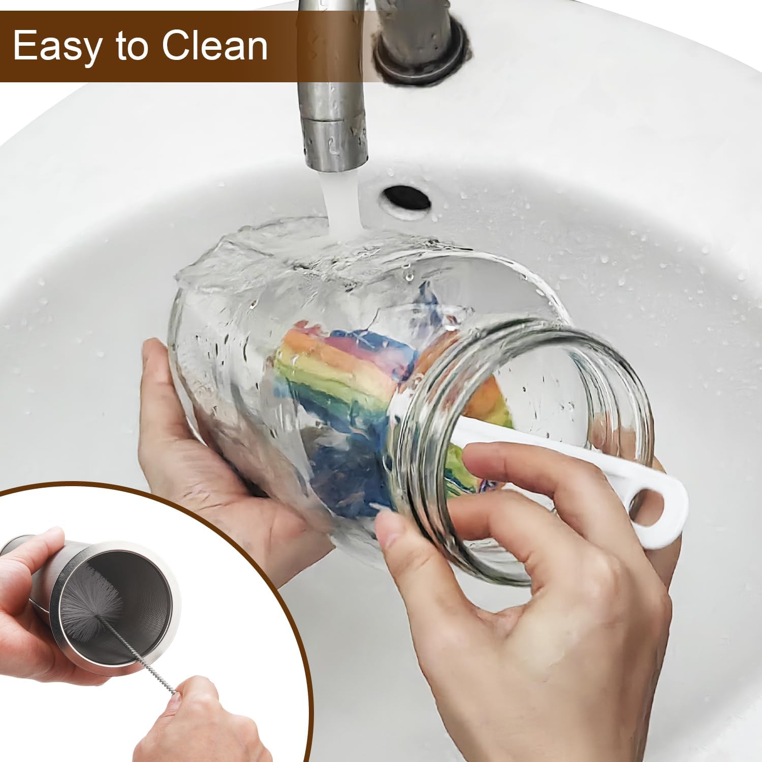 - Cold Brew Coffee Kit: Includes a 64oz mason jar glass pitcher with pour spout handle lid, premium 304 stainless steel mesh filter, compact coffee mat 11.8 × 7.8 inches, and 2 cleaning brushes. Cold brew coffee offers a smoother, richer taste than regular coffee, while preserving more beneficial compounds, such as polyphenols and antioxidants.