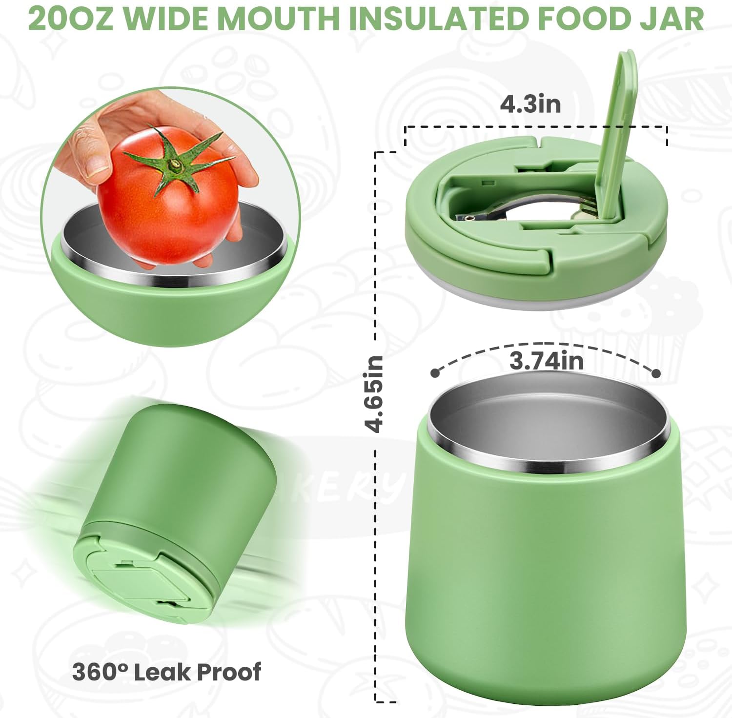 Soup Thermo for Hot Food 20oz Lunch Containers with Buckle Lid Wide Mouth Hot Food Jar Vacuum Insulated Stainless Steel Bento Box Leakproof with Spoon(Green)