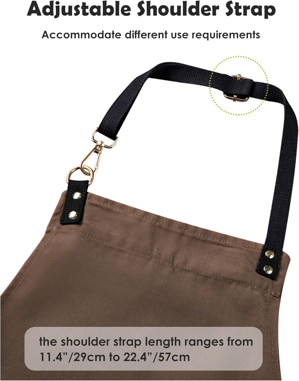 - Adjustable Chef Apron: Length: 29.5"/75cm; Width: 26.8"/68cm; Equipped with adjustable shoulder straps to accommodate different use requirements, the shoulder strap length ranges from 11.4"/29cm to 22.4"/57cm