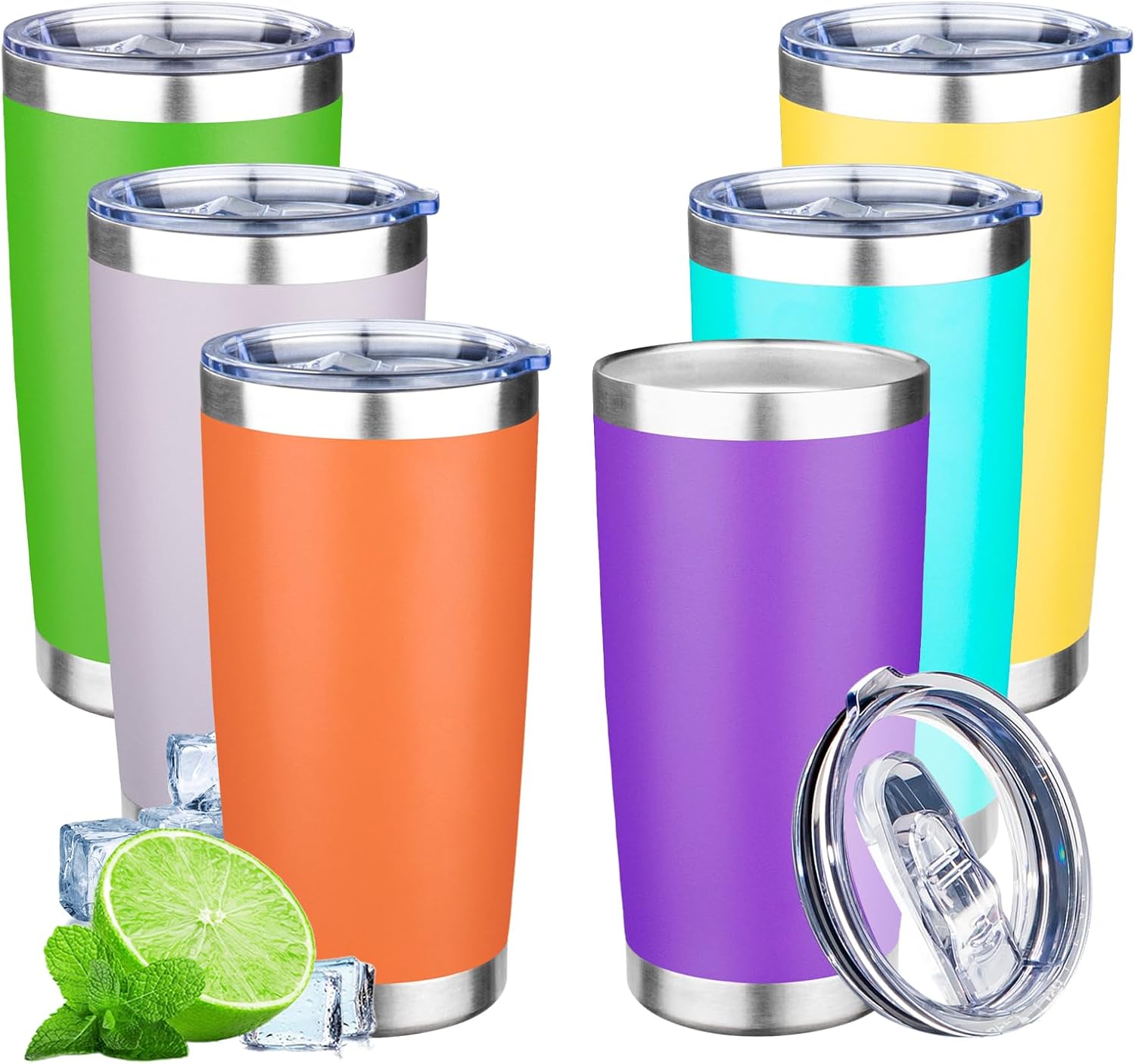 20oz Tumbler with Lid Double Wall Vacuum Insulated Travel Coffee Mug Stainless Steel Thermal Cup Powder Coated Sturdy Coffee Tumbler Bulk for Hot and Cold Beverages (Multicolor-1,6)
