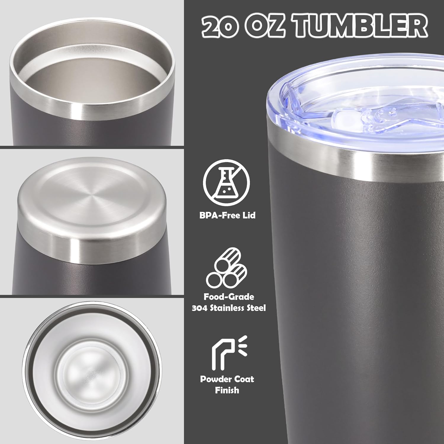 20oz Tumbler Stainless Steel Tumbler Cup with Lid Vacuum Insulated Double Wall Travel Mug, Durable Powder Coated Travel Coffee Tumbler Mug for Hot & Cold Drinks, Grey,4 Pack