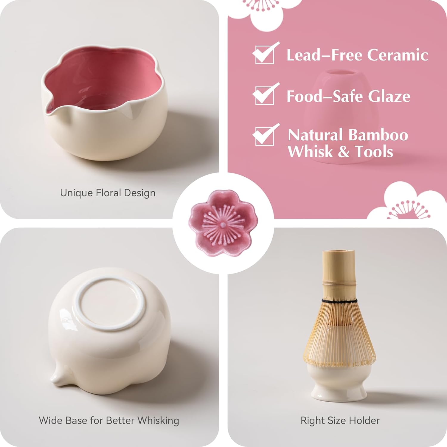 - 【ARTISTIC DESIGN】Inspired by the delicate beauty of blooming petals, this thoughtfully floral-inspired designed ceramic matcha bowl captures the elegance of nature in every curve. It pairs beautifully with the bamboo matcha whisk and matcha sets, creating a poetic, refreshing accent for your kitchen, tea corner, or matcha kit collection.