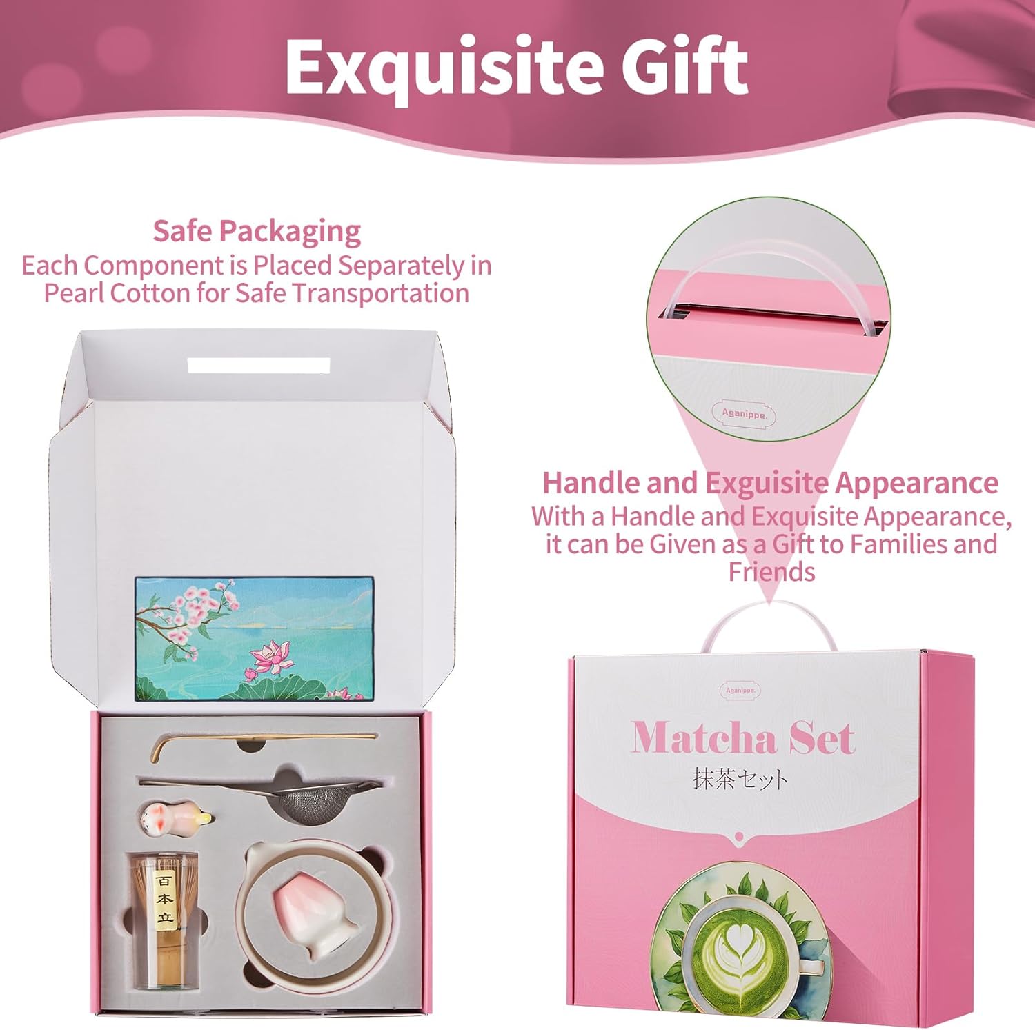 - Exquisite Matcha Gift Set - Our japanese pink matcha set comes with a beautiful gift box and a convenient handle. This matcha bowl set is a great gift for your friends and family.