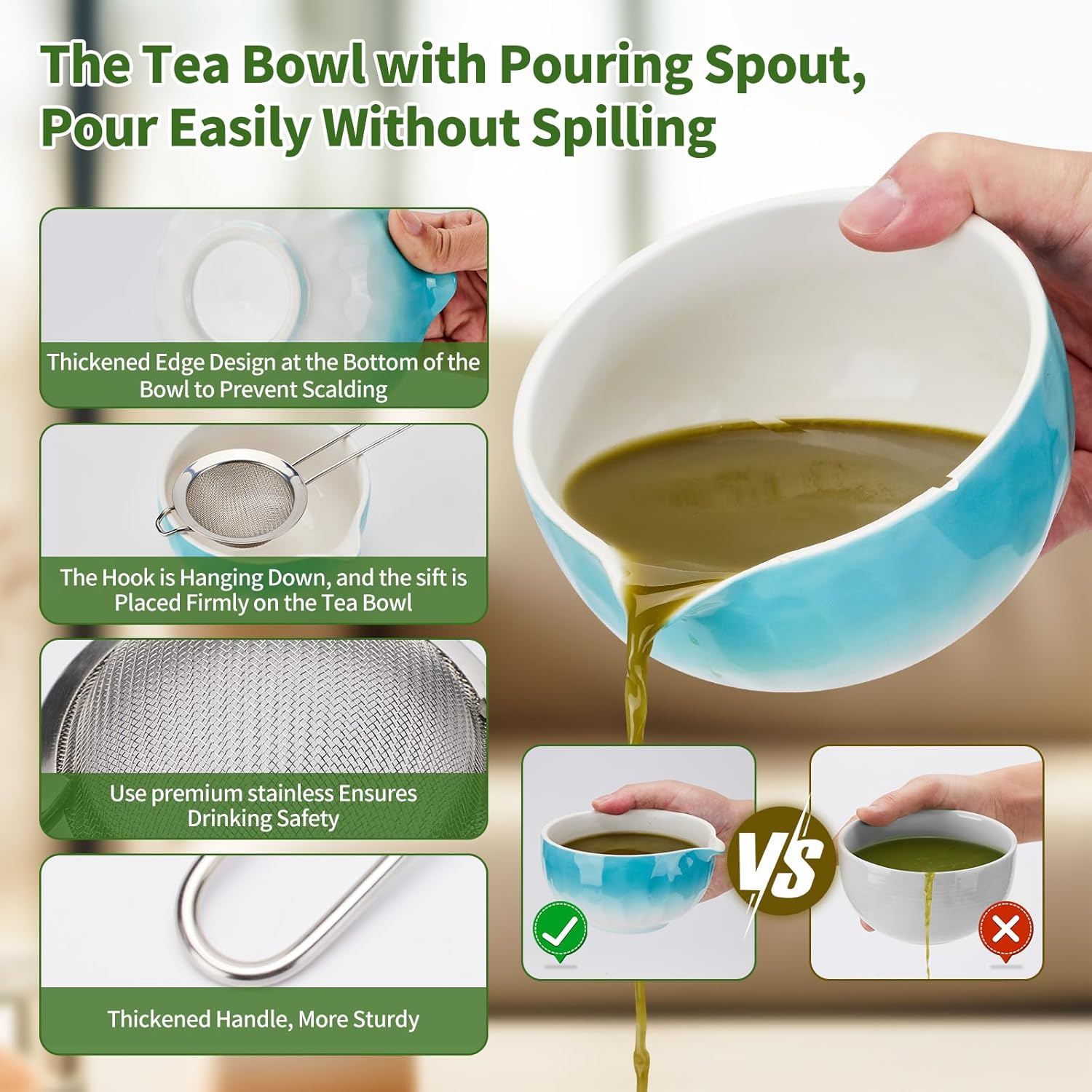 - Matcha Tea Lover's Delight - Our matcha whisk set can play an integral role in any matcha set. Your ideal companion for matcha tea, easy to use and beginner-friendly. The lead-free matcha bowl has a pouring spout to prevent liquid from spilling. The ceramic matcha bowl is easy to clean, handwash, dishwasher safe.