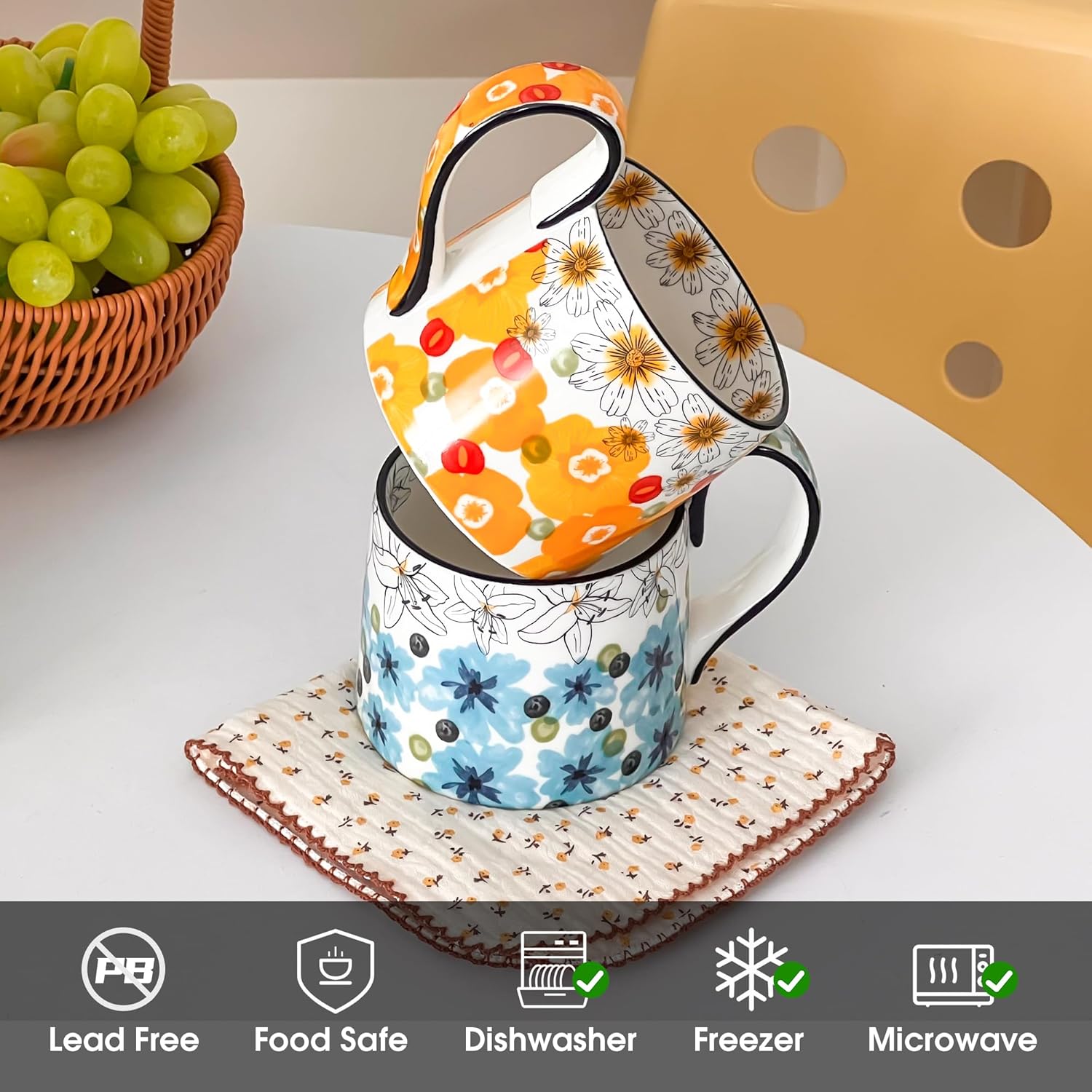 - FLORAL TEA CUP: Featuring a delicate floral design, beautiful floral mugs brings organic elegance to your daily ritual. The botanical motif blooms across the ceramic surface, blending artistic detail with clean