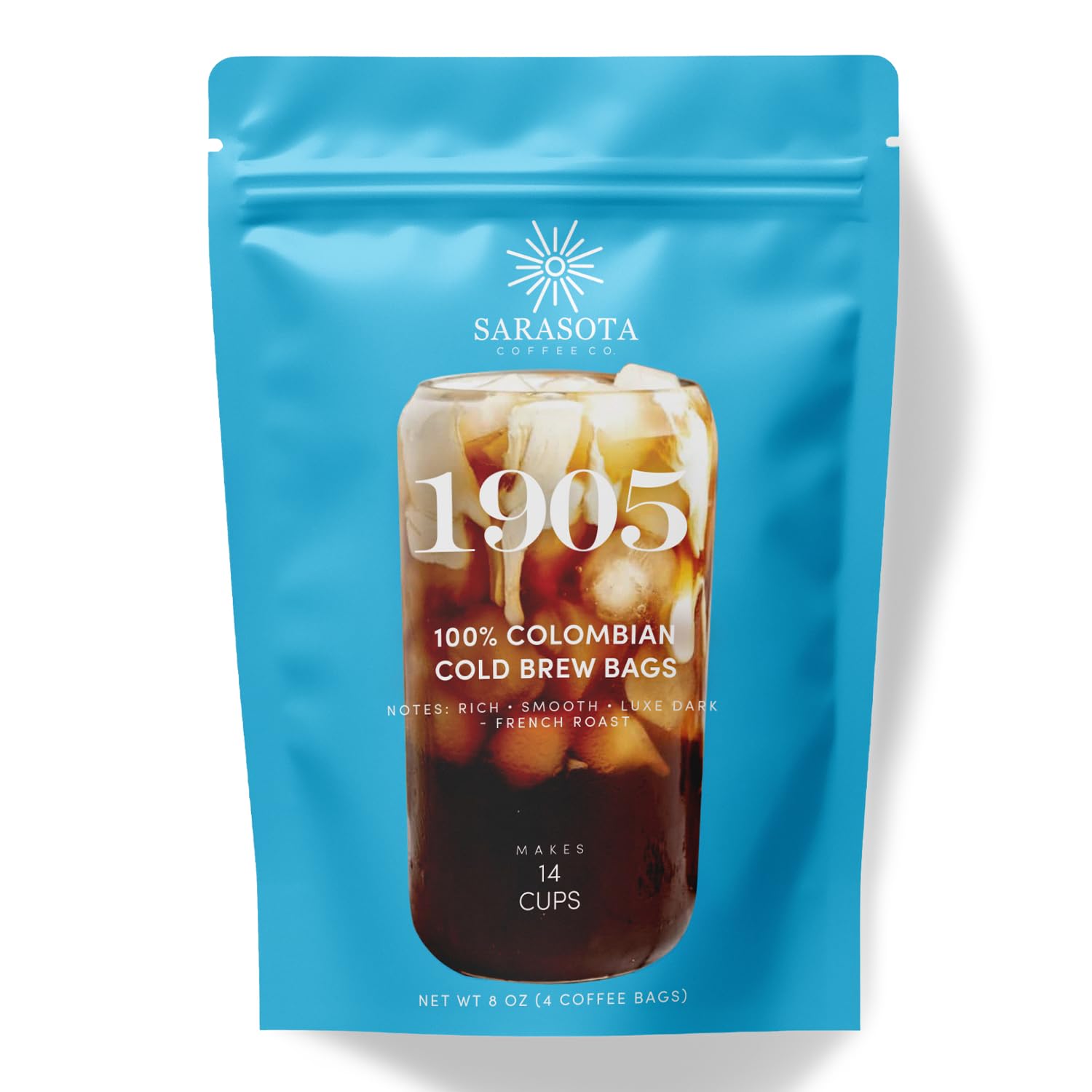 Sarasota Coffee 1905 Cold Brew Coffee Bags | 100% Colombian Dark French Roast | Rich & Smooth | Low Acid Ground Filter Packs | Cold Brew Kit Makes 14 Cups | Bold Luxe Roast Flavor