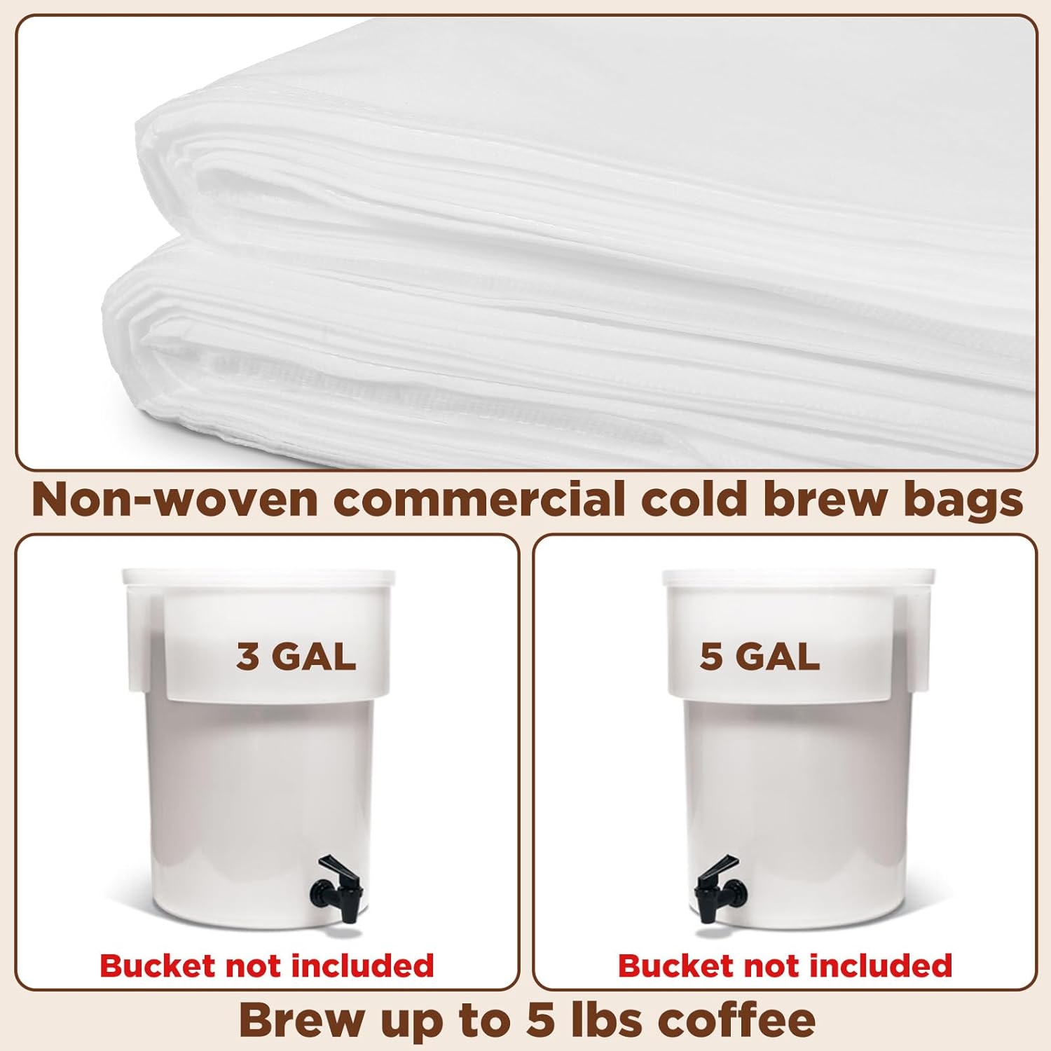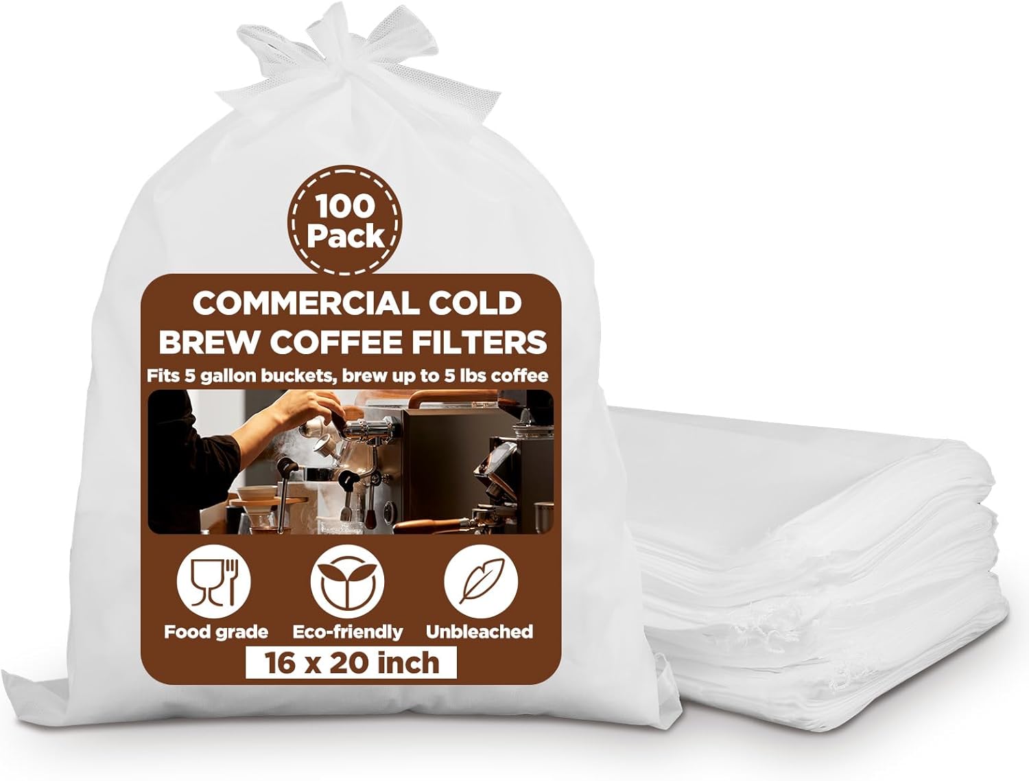 - 【Commercial-Grade Size & Capacity】Each 16" x 20" filter bag holds up to 5+ lbs of coffee grounds, perfect for 3.5–5-gallon buckets or commercial cold brew systems. Ideal for cafes, restaurants, and large-batch home brewing.
