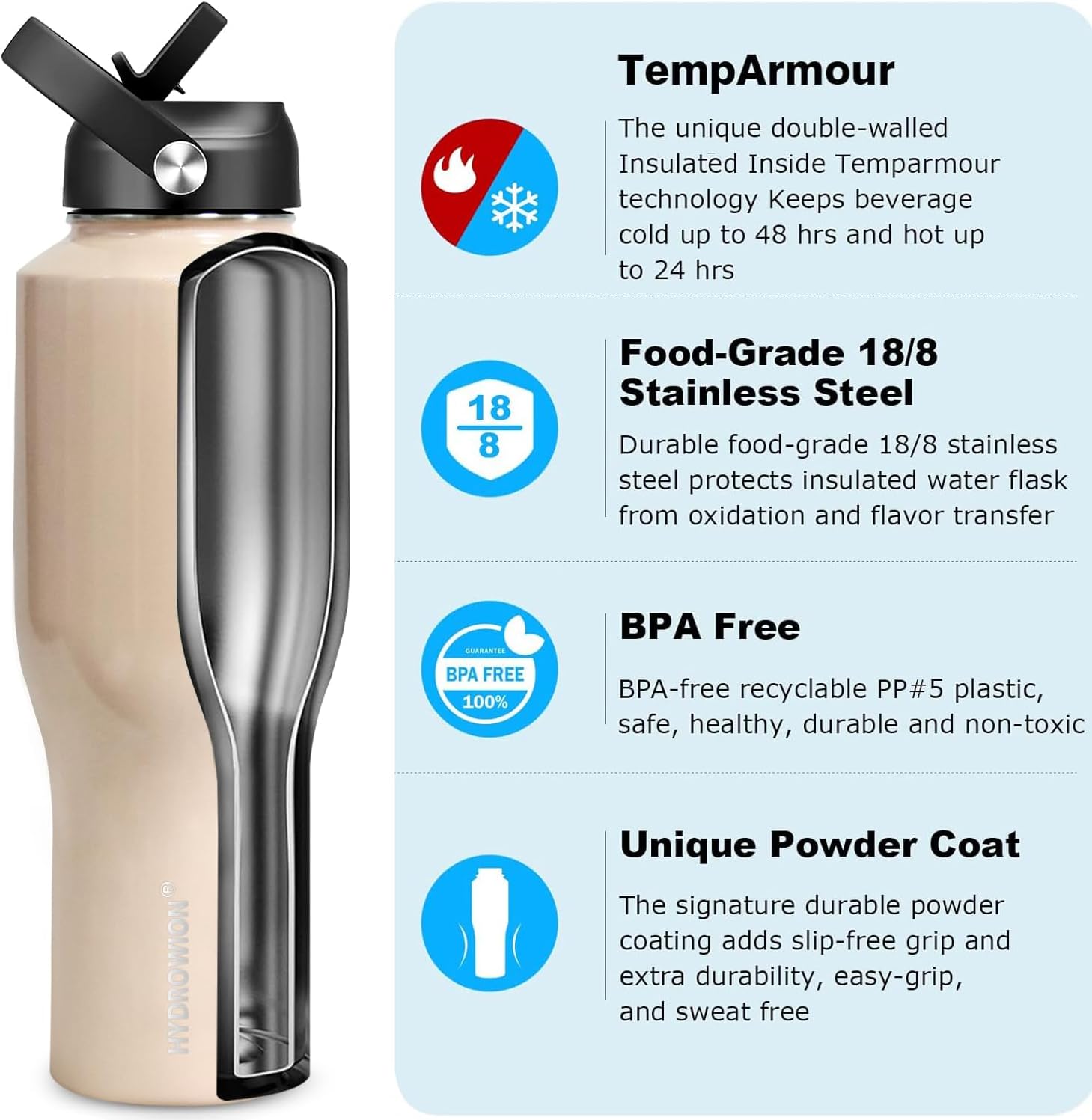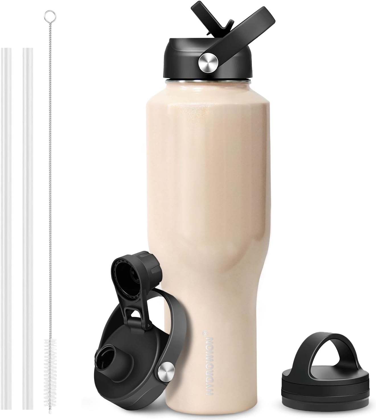 - 【WHAT YOU GET 】HYDROWION 32oz Insulated Water Bottle with 3 Straw Lids, 2 x Straws, 2 Brushes. Friendly customer service,90-day replacement. PLS contact us immediately if you are not satisfied FOR ANY REASON. We will be happily make things right!