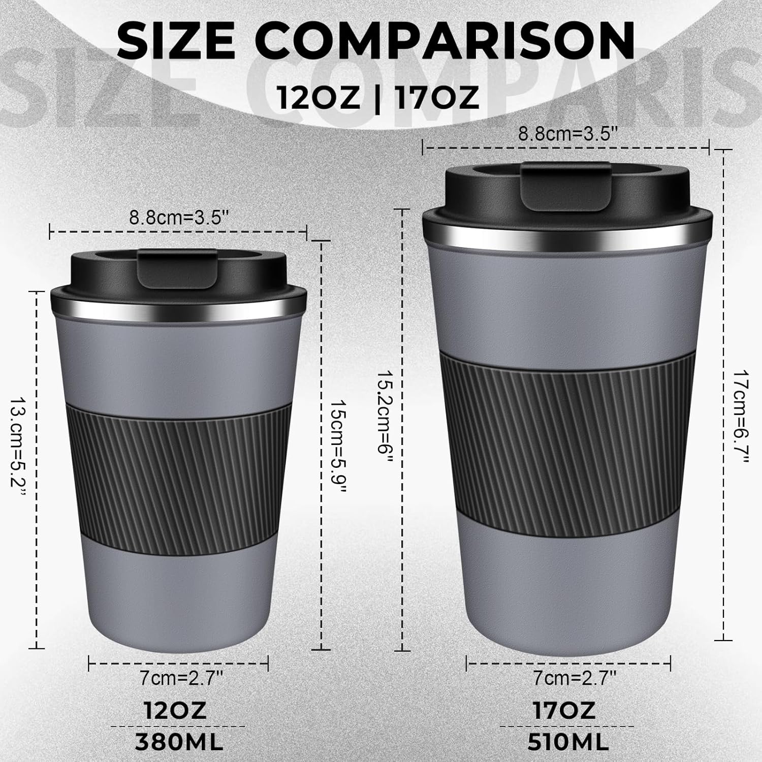 - Perfect Fit for Coffee Machine & Car Cupholder: Coffee travel mug available in 2 sizes-12oz or 17oz, both sizes fit under most coffee machine and car cup holders, available in multiple colors for home, office, on-the-go, or travel