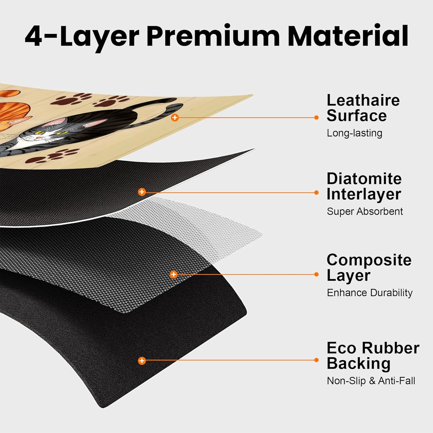 17"x 32" Coffee Bar Mat, Cats Absorbent Dish Drying Mat Cuttable Hide Stain Draining Table Pad for Kitchen Counter, Coffee Bar Accessories