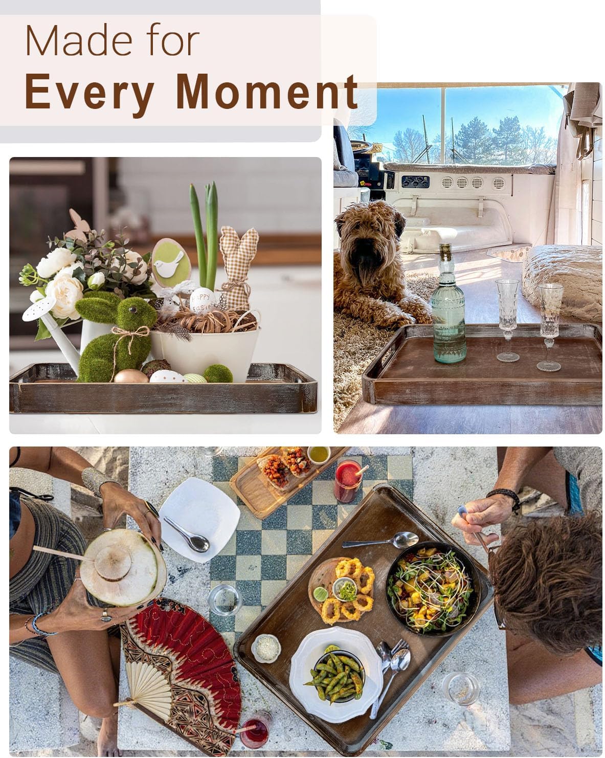 - RUSTIC & STYLISH – A perfect accessory for any space, fitting both traditional and modern décor. Use it as an ottoman tray or as a beautiful display piece on your coffee table, kitchen countertop, or bed‑end bench.