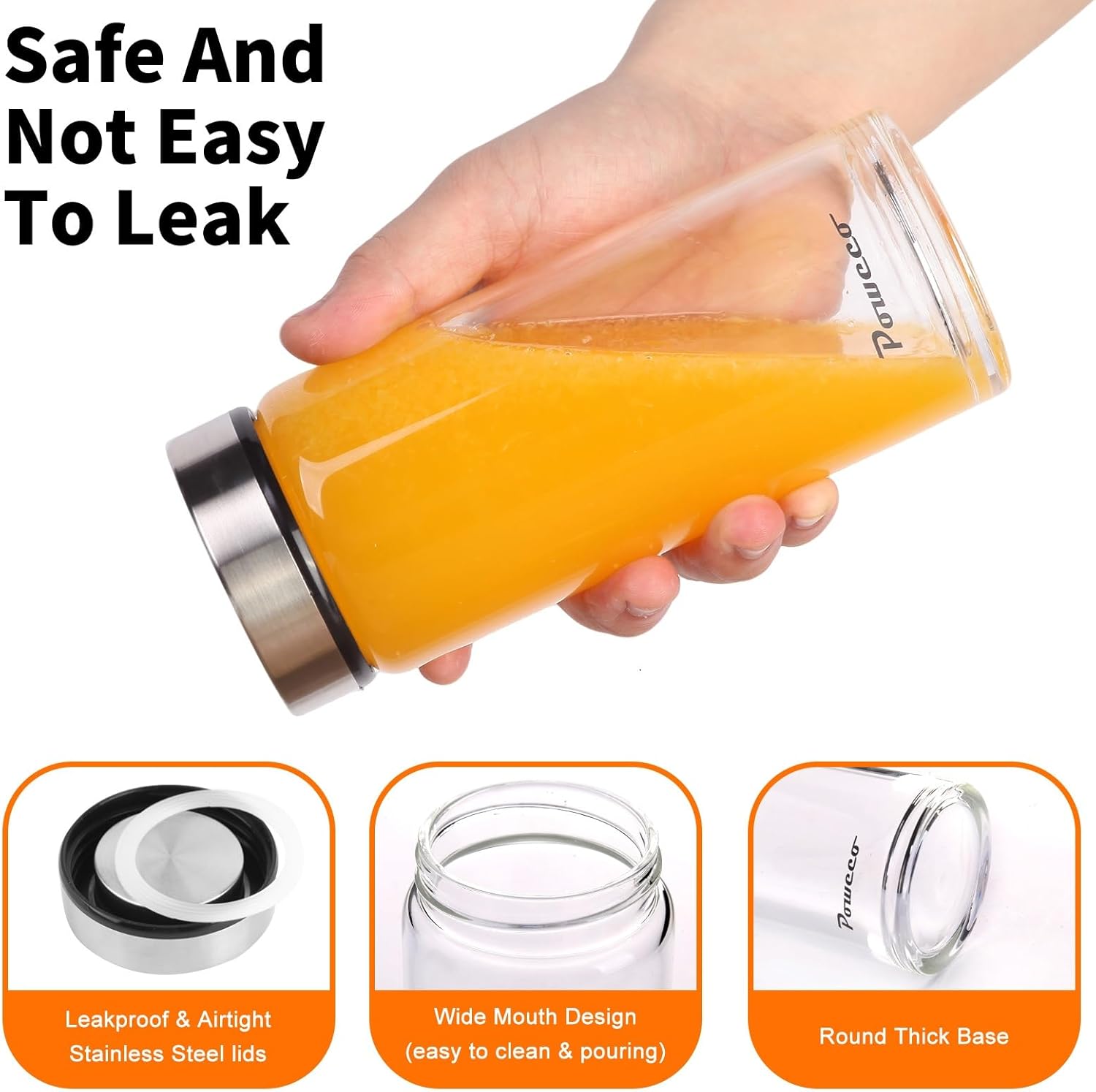- 5. Built to Last: Made with high-quality borosilicate glass and durable, leak-proof stainless steel lids, our bottles are designed to withstand daily use. Ideal for storing juice made from your juicer, these bottles deliver lasting performance and style. Upgrade your juicing and beverage experience with our premium glass juice bottles today!