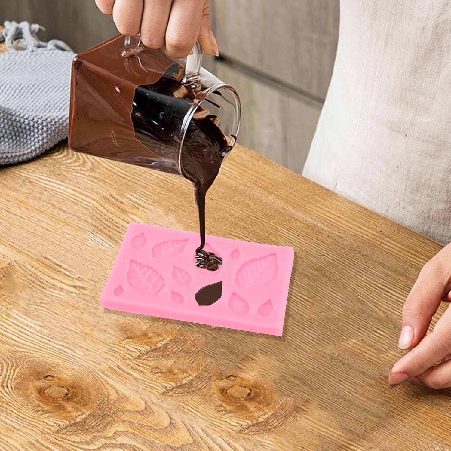2 Pcs Rose Flowers and Leaves Chocolate Fondant Candy Silicone Molds for Cupcake Toppers, Crafting Projects, Wedding and Birthday Cake Decoration