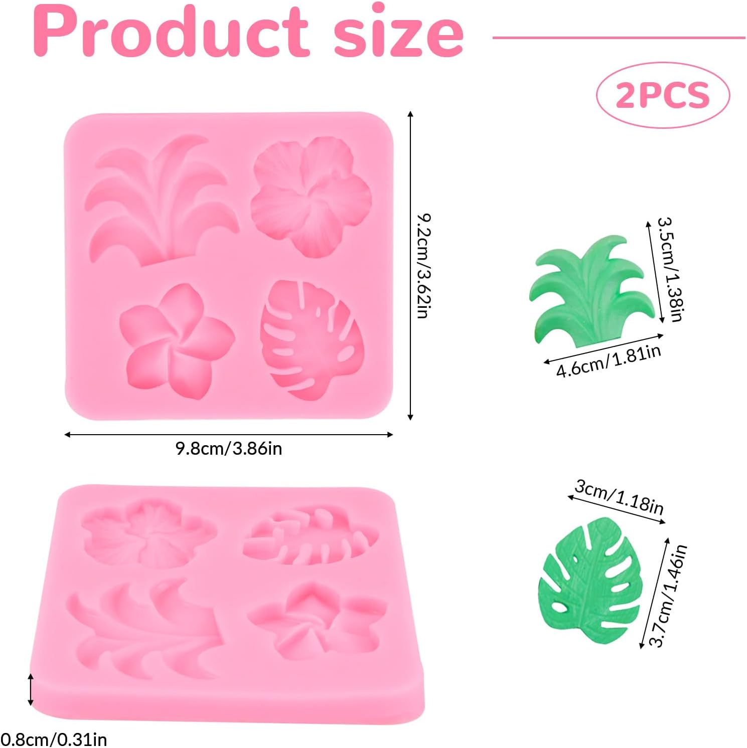 - Complete Set:Includes 2 fondant molds(flowers and leaves)with 4 designs:hibiscus,plumeria,monstera,and pineapple.Great for creating varied food,clay,and candle designs.