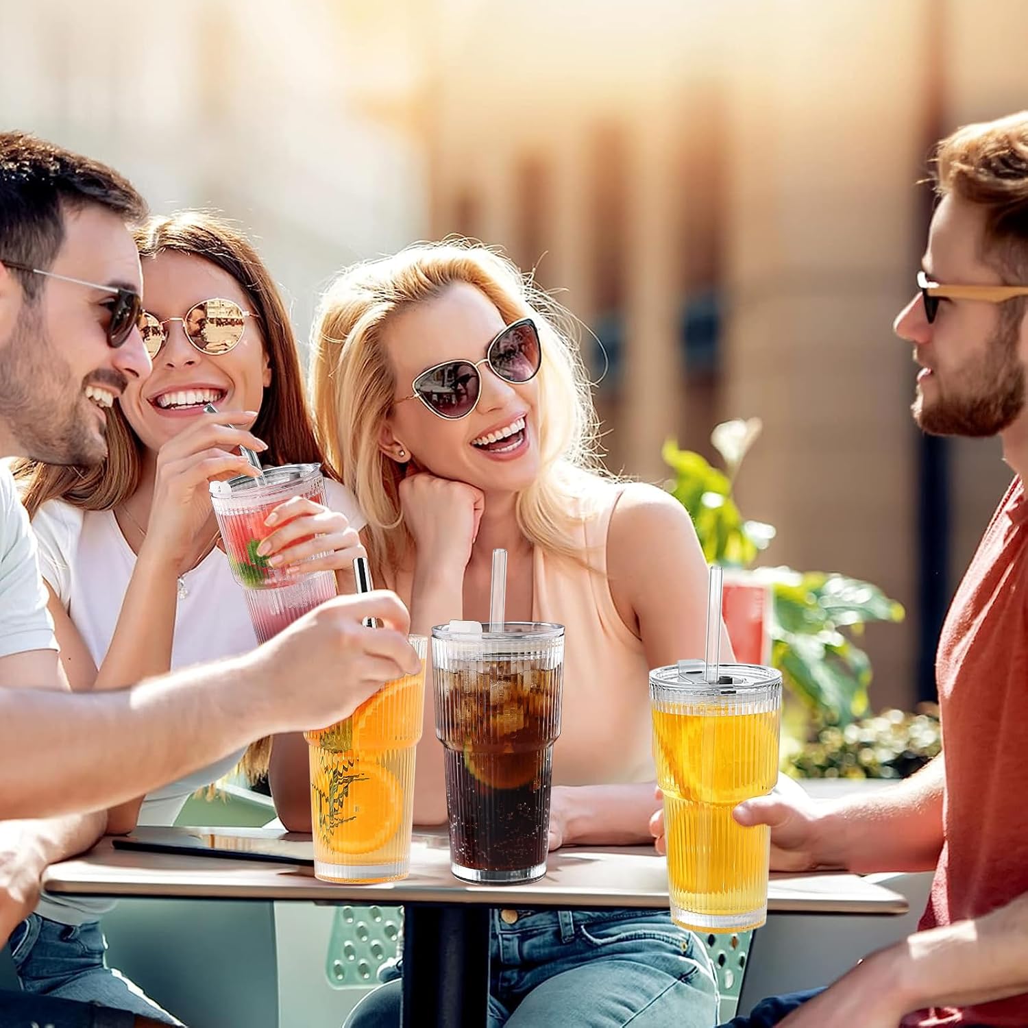 Glass Cups with Lids and Straws - 20oz Glass Tumbler with Straw and Lid, Premium Coffee Cups for Tea, Iced Coffee, Smoothie,Ideal Gift for Home, Office, 4pack