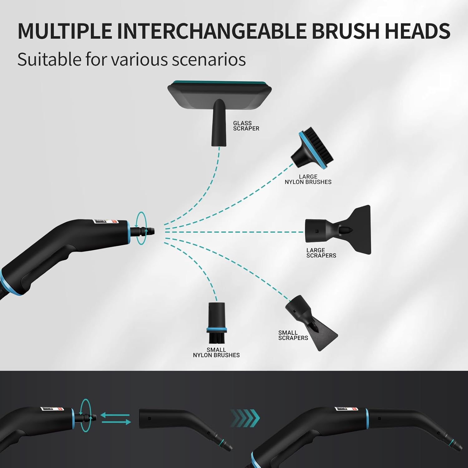 - Accessories:This comprehensive accessory set includes 11 practical tools: an elbow nozzle, small/large scrapers, glass scraper, extension scraper, copper brush, small/large nylon brushes, cleaning cloth cover, cleaning needle,Cleaning gloves and detailed user manual – each specifically engineered for different cleaning challenge