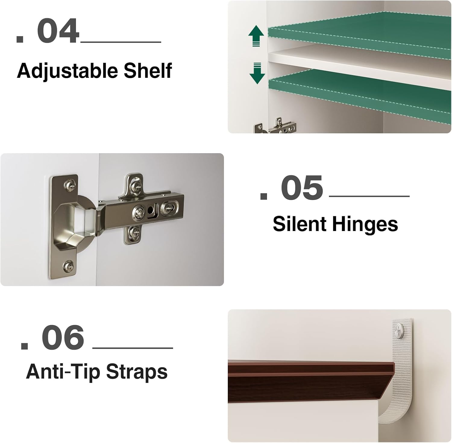 - Safety & Hassle-Free Assembly: Equipped with an anti-tip kit for added safety, the storage cabinet includes all necessary hardware and clear step-by-step instructions for effortless setup—typically completed within 40 minutes by two people