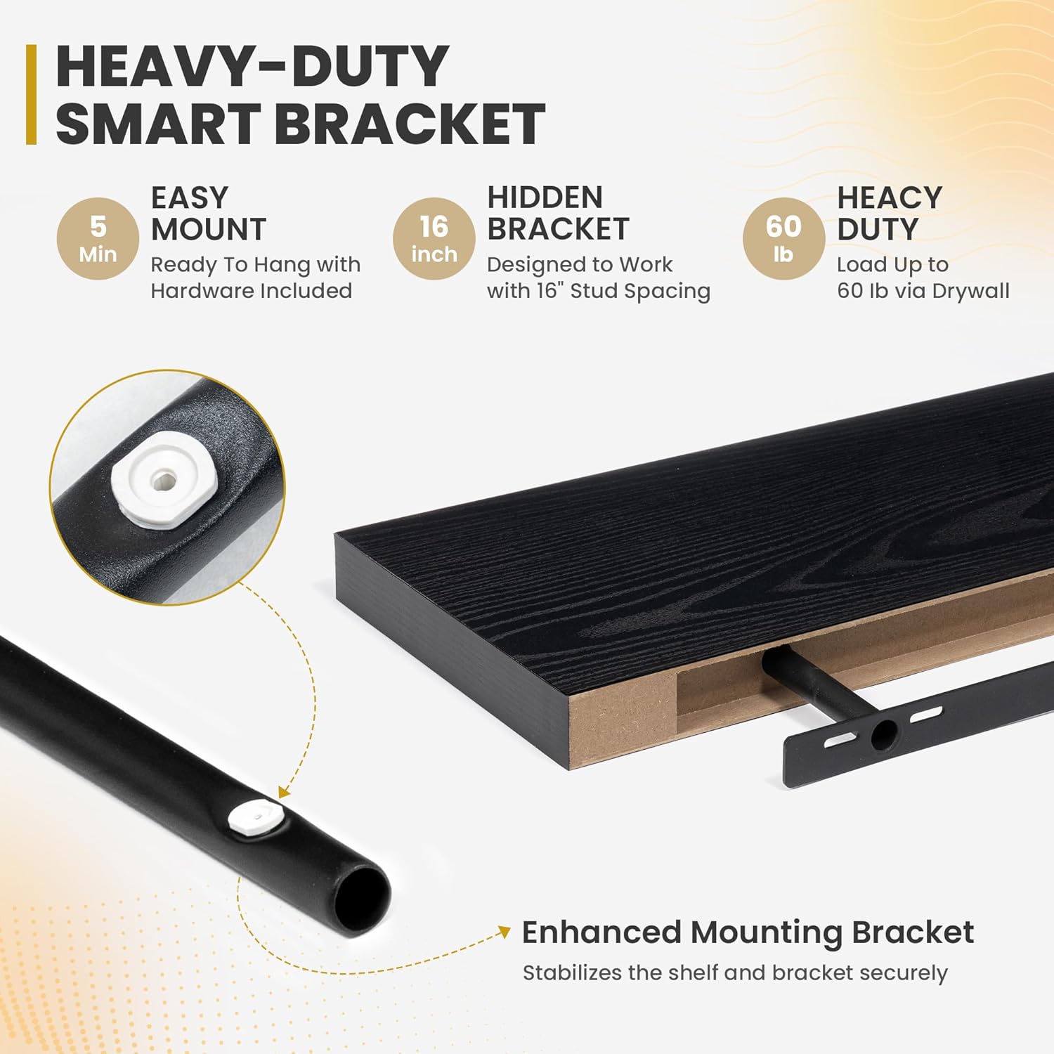 - [ROBUST & SECURE MOUNTING]: Equipped with a sturdy, hidden mounting bracket, these 72-inch floating shelves ensure solid support for your items. Designed for easy and secure installation, they come with all necessary hardware for a firm, wobble-free setup, allowing you to confidently display decor, photos, or functional items with style.