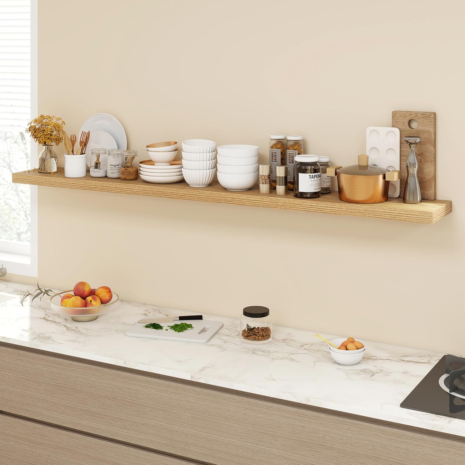 - [ROBUST & SECURE MOUNTING]: Equipped with a sturdy, hidden mounting bracket, these 72-inch floating shelves ensure solid support for your items. Designed for easy and secure installation, they come with all necessary hardware for a firm, wobble-free setup, allowing you to confidently display decor, photos, or functional items with style.
