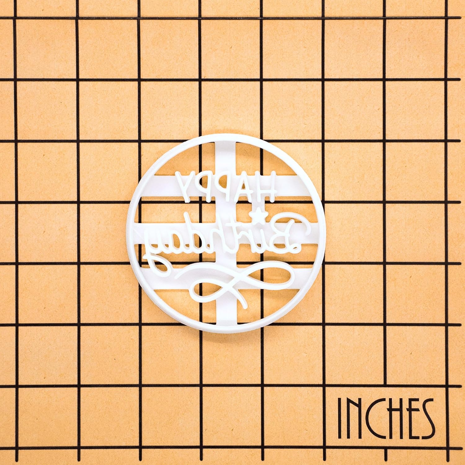 BAKERLOGY Happy Birthday Cookie Cutter - Round Biscuit Embosser for Celebration Baking, Detailed Fondant Stamp for Cakes, Cupcakes, Dough, and Clay