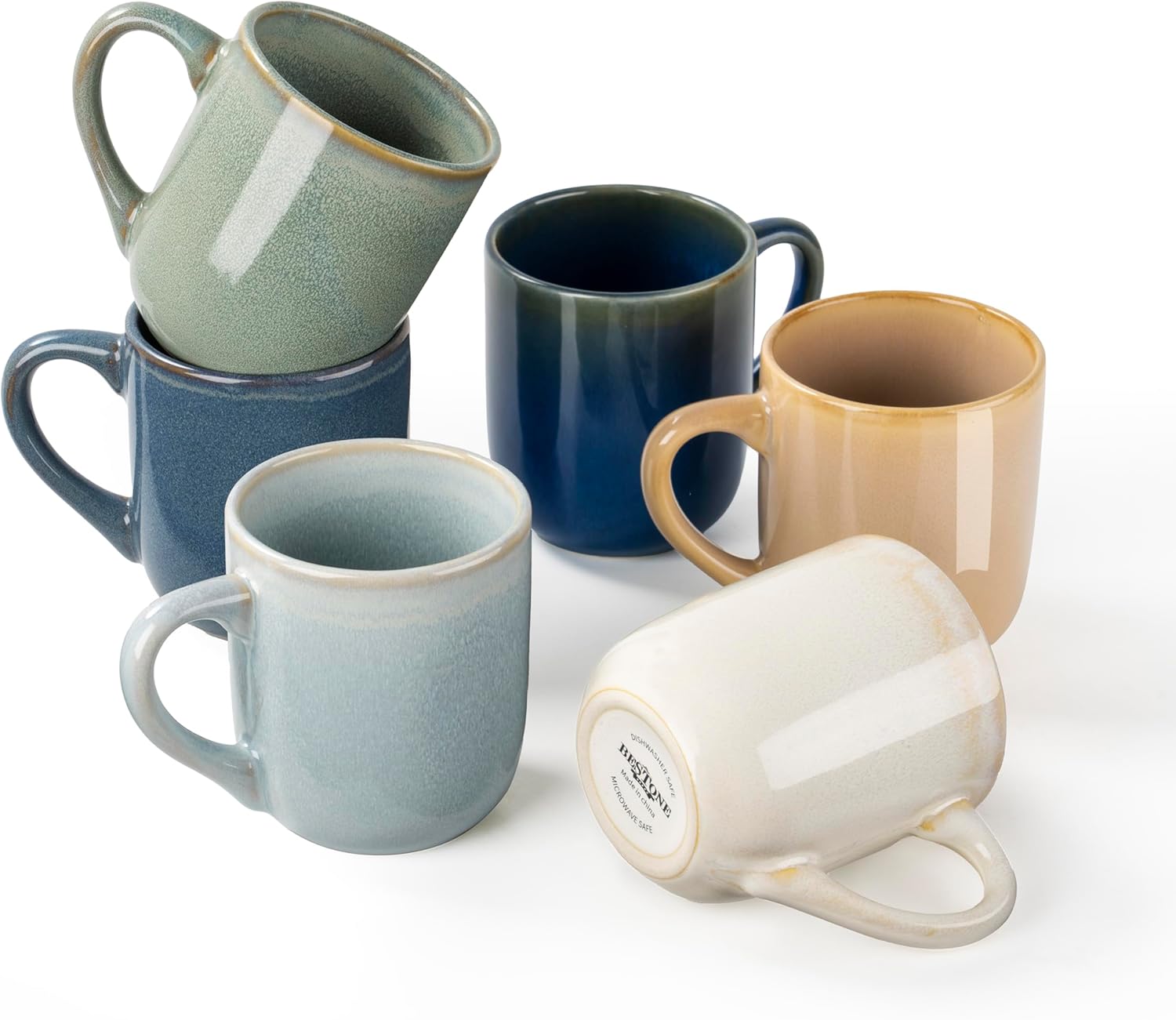 bestone Coffee Mugs Set of 6,12 oz Coffee Mugs, Ceramic Mugs with Handles,Cups Microwave & Dishwasher safe,Vibrant Colors